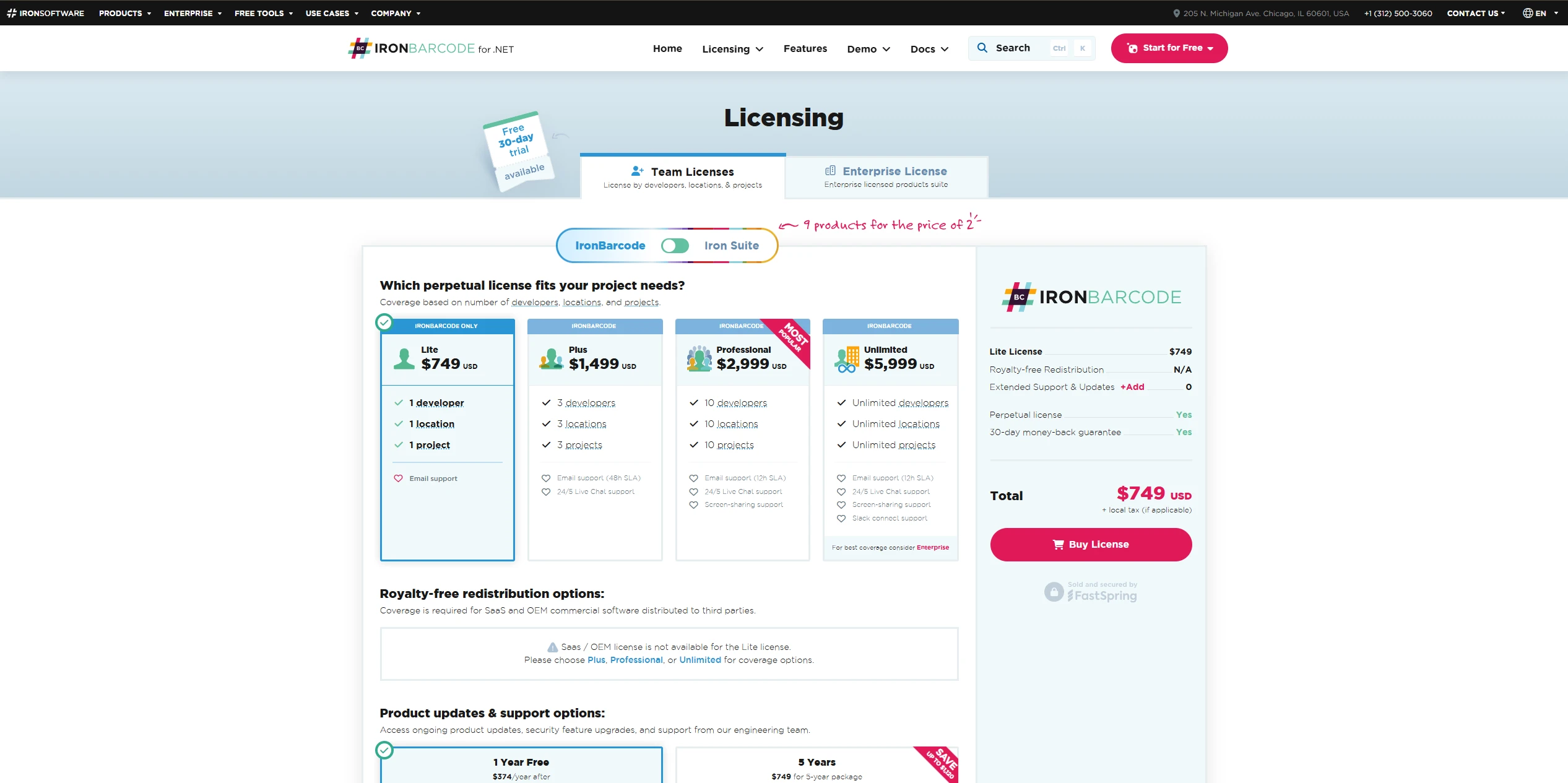 在庫管理を向上させる準備はできましたか? IronBarcode の詳細なドキュメントを参照するか、無料トライアルを試してその機能を体験してください。 ライセンスは$799から始まります。 実装に関する質問やトラブルシューティングについては、サポート チームが待機しています。 よりスマートで効率的な在庫システムを今すぐ構築しましょう。