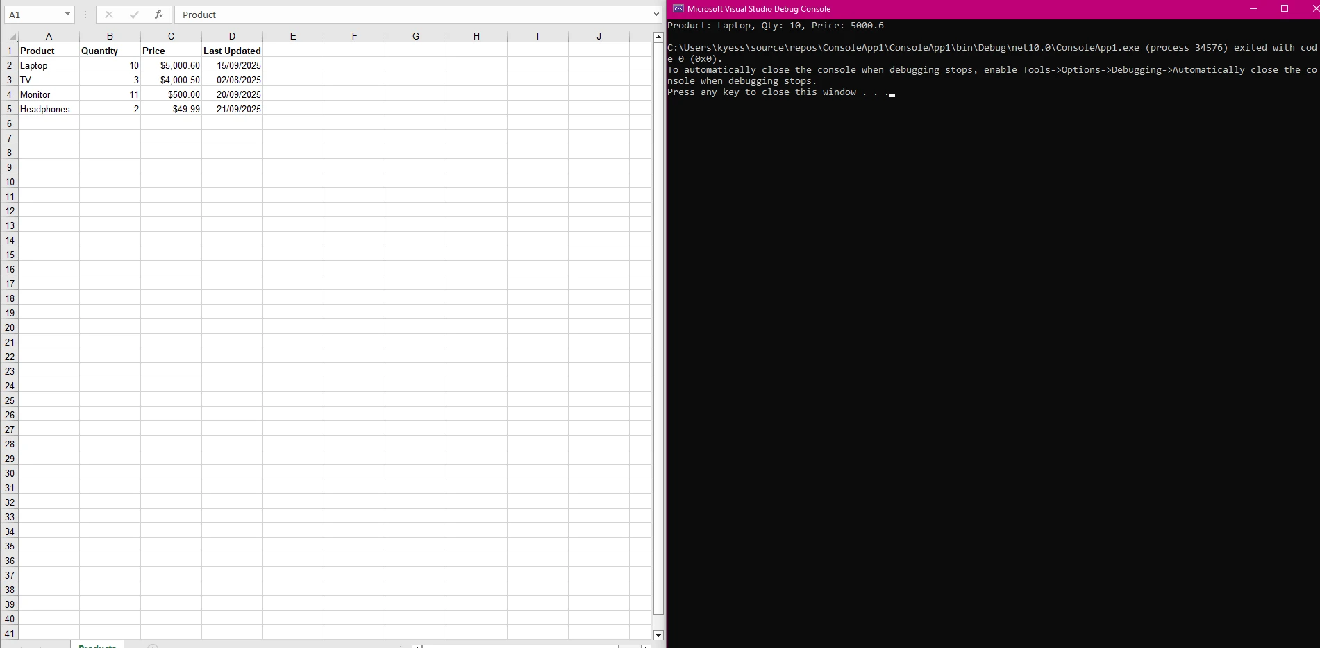 C#でIronXLを使用してExcelファイルを読み取る最良の方法: 画像2 - IronXLによるシンプルなExcel読み取り出力</a