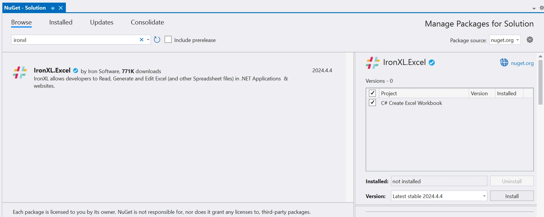 IronXL NuGet パッケージをインストールするにはどうすればよいですか?