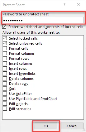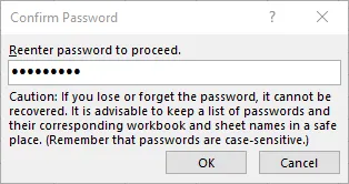 その後、シートを保護するためのパスワードを入力し、OKボタンをクリックします。