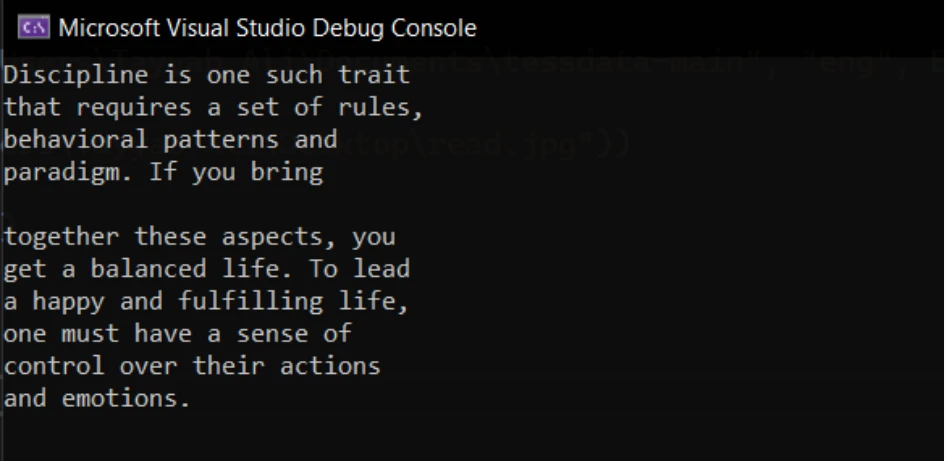 Console.WriteLine(ocrResult.Text); // Print the extracted text