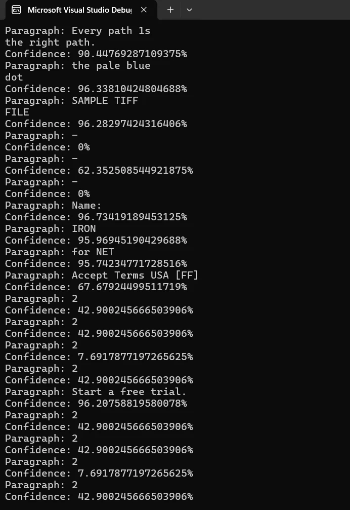 他のコンポーネントと比較する Tesseract C# vs IronOCRの使用: .NETでのOCR実装の完全ガイド Kannapat Udonpant 更新日:2026年1月5日 IronOCR をダウンロード NuGet ダウンロード DLL ダウンロード Windows 版 無料トライアル LLM向けのコピー LLM向けのコピー LLM 用の Markdown としてページをコピーする ChatGPTで開く このページについてChatGPTに質問する ジェミニで開く このページについてGeminiに問い合わせる Grokで開く このページについてGrokに質問する 困惑の中で開く このページについてPerplexityに問い合わせる 共有する Facebook で共有 Xでシェア(Twitter) LinkedIn で共有 URLをコピー 記事をメールで送る クイック比較:Tesseract C# .NET WrapperとIronOCRの比較 実装の詳細に入る前に、この比較表はオープンソースのTesseract .NETラッパーと商用のIronOCRライブラリの主な特徴と違いを要約しています。 これらの違いは、C#アプリケーションでOCRを構築する.NET開発者の開発速度、デプロイの複雑さ、長期的なメンテナンスコストに影響します。 機能 Tesseract .NET ラッパー IronOCR インストール Tesseract NuGetパッケージ + tessdataフォルダ + C#ランタイム インストール-パッケージIronOCR (単一パッケージ) 画像の前処理 マニュアル(外部ツールが必要) 組み込み(ノイズ除去、傾き補正、解像度の向上) 画像フォーマットのサポート 制限あり(PIX形式への変換が必要) PNG、JPG、TIFF、GIF、BMPのネイティブサポート 対応言語 100+ (マニュアルトレーニングデータダウンロード) 127以上の言語パック(NuGet経由) PDF処理 追加ライブラリが必要 ビルトインPDFファイルサポート クロスプラットフォーム プラットフォームごとの複雑な構成 Windows/Linux/macOSで一貫性があること バーコード/QR読み取り 含まれないもの 統合 検索可能なPDF出力 マニュアルの実装 検索可能なPDFエクスポート機能内蔵 商業サポート コミュニティ限定 バグ修正を含むプロのエンジニアリングサポート ライセンス アパッチ2.0(無料) 商用(無料トライアルあり) 比較からわかるように、どちらのアプローチにも明確な強みがあります。 Tesseractのオープンソースライセンスは予算に制約のある.NETプロジェクトにとって魅力的であり、IronOCRの包括的な機能セットと簡素化されたデプロイは開発速度と生産信頼性を優先するチームにとって魅力的です。 C#プロジェクトにTesseract OCRをインストールするには? .NETプロジェクトでネイティブTesseractをセットアップするには、最初のNuGetインストール以外にも複数のコンフィギュレーションステップが必要です。 NuGet のTesseractOCRパッケージはTesseractエンジンをラップしていますが、.NET開発者は言語ファイルを管理し、Visual C++ランタイムがターゲットマシンにインストールされていることを確認する必要があります。 VisualStudioにおけるTesseractのインストール: PM> Install-Package TesseractOCR PM> Install-Package TesseractOCR PM> Install-Package TesseractOCR $vbLabelText $csharpLabel インストール後、GitHubのtessdataリポジトリから適切なトレーニングデータをダウンロードし、.NETプロジェクトに設定します。 tessdataフォルダは、実行時にアクセスできる必要があり、通常、このフォルダへのフルパスを設定するか、出力ディレクトリの実行ファイルと一緒に配置する必要があります。 .NETラッパーと言語ファイル間のバージョンの不一致は、初期化の失敗を頻繁に引き起こし、Stack Overflowのディスカッションで開発者のフラストレーションの一般的な原因となっています。 また、Tesseractのネイティブ・バイナリは、アプリケーションを実行するマシンにVisual C#++ Redistributableがインストールされている必要があります。 この依存関係は、特にコンテナ環境やクライアントマシン(Windows XPからWindows 11まで)において、管理者によるインストールが容易でない場合、デプロイを複雑にする可能性があります。 IronOCRのインストール:。 Install-Package IronOCR Install-Package IronOCR SHELL Using Tesseract C# vs IronOCR: The Complete Guide to OCR Implementation in .NET:イメージ1 - インストール IronOCRは、すべてを単一のマネージド.NETパッケージにバンドルすることで、設定の複雑さを排除します。 C#ランタイム、tessdataフォルダ管理、プラットフォーム固有のネイティブDLLを追跡する必要はありません。 言語パックは、必要に応じて個別のNuGetパッケージとしてインストールされ、標準の.NET Frameworkと.NET Coreの依存関係管理と統合されます。 Iron Softwareは、インフラストラクチャに頭を悩ませることなく、基本的なOCR機能を必要とする.NET開発者のために、このアプローチを特別に設計しました。 IronOCRを使い始めるについてはこちらをご覧ください。 各ライブラリを使用してどのように画像からテキストを抽出しますか? 入力画像の読み込みやプレーンテキストの抽出といった基本的なOCRワークフローは、TesseractとIronOCRのAPI設計の大きな違いを強調しています。 これらの違いを理解することは、.NET開発者が各アプローチの学習曲線と実装の労力を予測するのに役立ちます。 どちらのラ