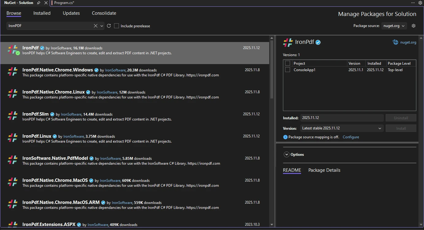 2.必要なIron Software NuGetパッケージのインストール