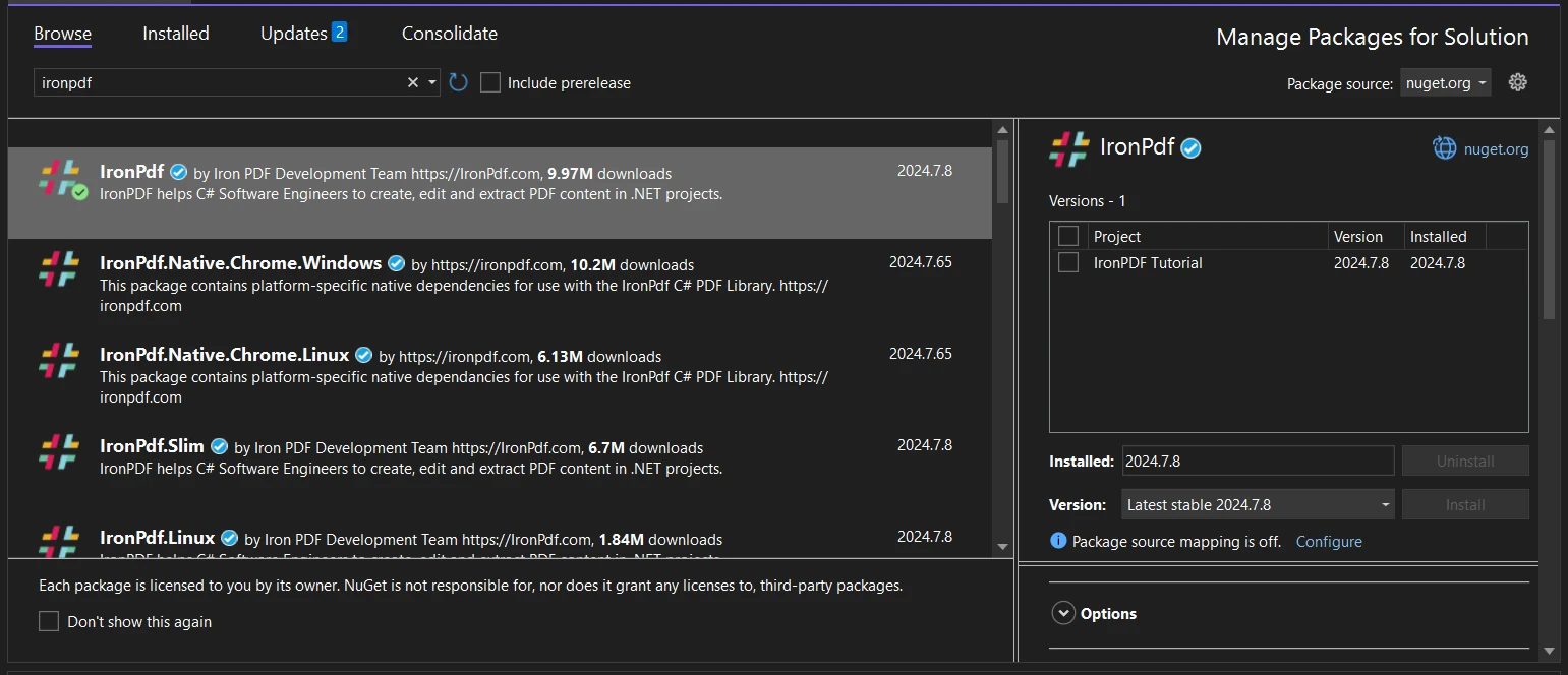 ステップ2: IronPDFをインストールする