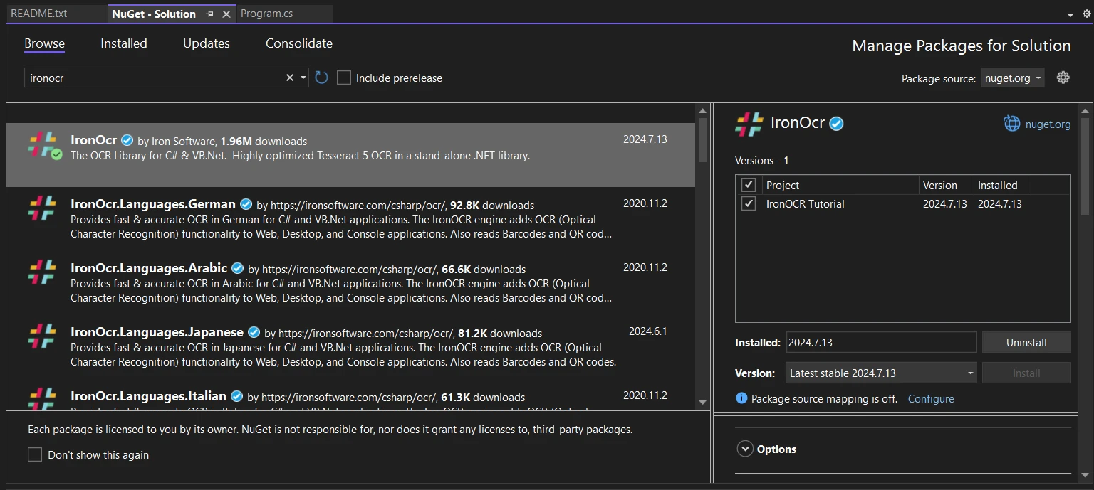 ステップ3: IronOCRをインストールする
