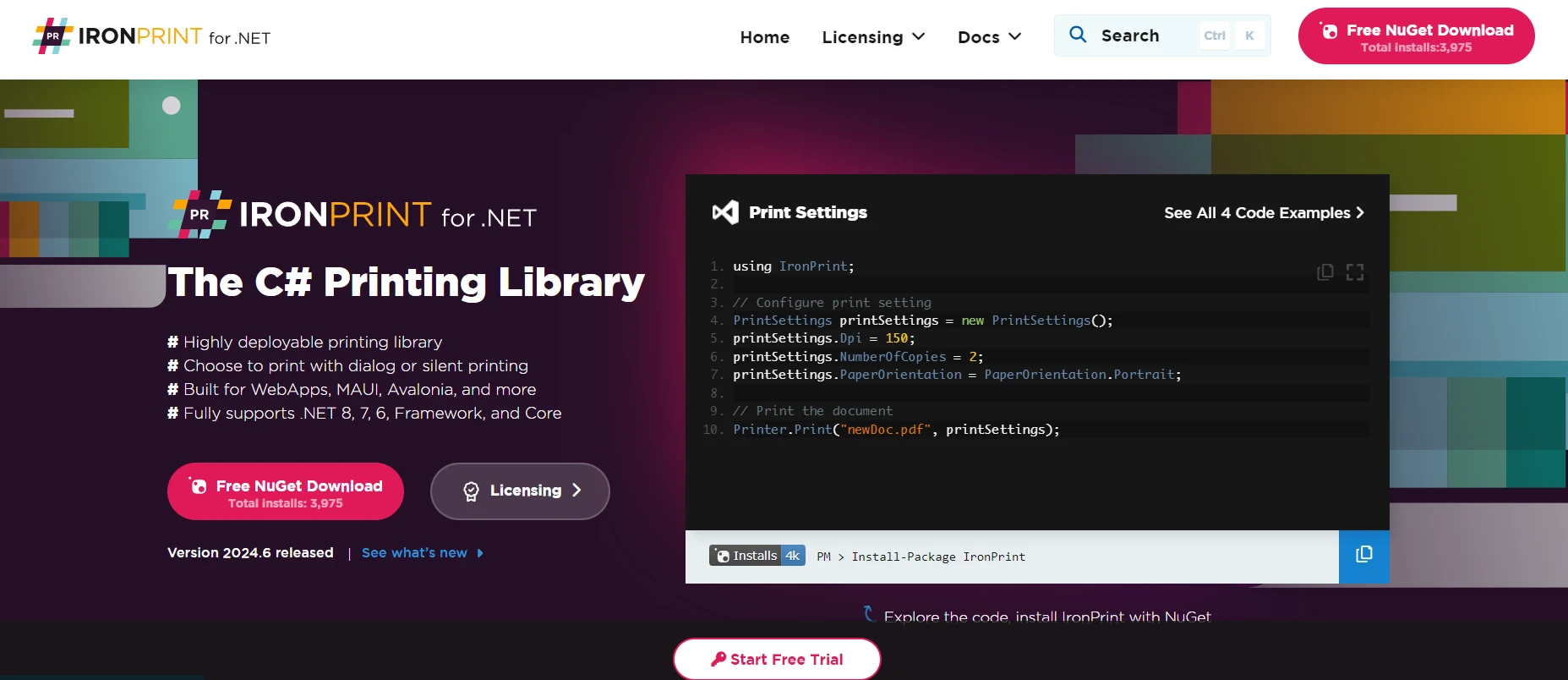 .NET アプリケーションとの統合: IronPrint は .NET アプリケーションとシームレスに統合され、既存のソフトウェア ソリューション内での簡単な実装を可能にします。