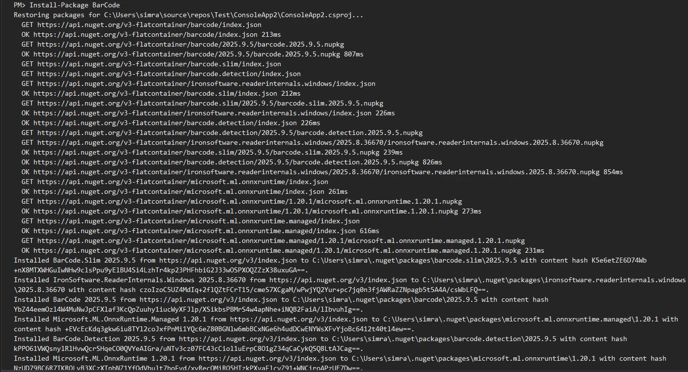 使用 IronBarcode 的 C# 條碼產生器原始碼:圖 1 - 安裝