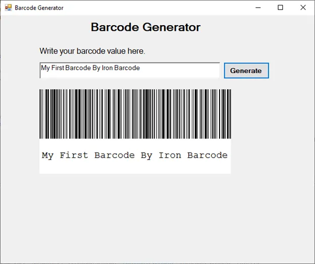 使用IRONBARCODE 條碼生成器.NET教程 Jordi Bardia 更新:9月 1, 2025 下載 IronBarcode NuGet 下載 DLL 下載 開始免費試用 法學碩士副本 法學碩士副本 將頁面複製為 Markdown 格式,用於 LLMs 在 ChatGPT 中打開 請向 ChatGPT 諮詢此頁面 在雙子座打開 請向 Gemini 詢問此頁面 在雙子座打開 請向 Gemini 詢問此頁面 打開困惑 向 Perplexity 詢問有關此頁面的信息 分享 在 Facebook 上分享 分享到 X(Twitter) 在 LinkedIn 上分享 複製連結 電子郵件文章 鑑於條碼使用量的迅速增長,開發人員必須能夠使用他們喜歡的程式語言來產生條碼。 因此,本教學將示範如何在 .NET 中產生條碼。 條碼產生器 .NET 教學課程 在 Visual Studio 中建立項目 安裝 C# 條碼產生器庫 設計 Windows 窗體應用程式的使用者介面 編寫核心功能的程式碼 執行 .NET 條碼產生器 讓我們開始教學。 創建專案 本教學課程使用最新版本的 Visual Studio 和 Windows 窗體應用程式範本。 您可以選擇使用您喜歡的應用程序,並使用您現有的項目和版本。 開啟 Visual Studio > 按一下"建立新專案" > 選擇"Windows 表單應用程式範本" > 按下"下一步" > 為專案命名 > 按"下一步" => 選擇目標 .NET Framework => 按一下"建立"按鈕。 條碼產生器 .NET 教程,圖 1:建立一個新的 Windows 窗體應用程式 建立一個新的 Windows 窗體應用程式 安裝條碼庫 安裝條碼產生器庫有很多好處。 IronBarcode 是用 C# 編寫的,它提供了只需一行程式碼即可建立條碼和二維碼的功能。 它還支援以所需的檔案格式儲存二維碼或條碼。 此外,它還為在 .NET 中產生條碼提供免費服務和運行時支援。 我們先來安裝 IronBarcode NuGet 套件。 您可以使用以下三種方法之一進行安裝: 套件管理員控制台 在軟體包管理器控制台中輸入以下命令。 它將為您下載並安裝該軟體包。 Install-Package BarCode 條碼產生器 .NET 教程,圖 2:套件管理器控制台安裝步驟 軟體套件管理器控制台安裝步驟 NuGet 套件管理器解決方案 您也可以使用 NuGet 套件解決方案安裝條碼套件。 只需按照以下步驟操作: 按一下"工具" > "NuGet 套件管理員" > "管理解決方案的 NuGet 套件" 。 這將開啟 NuGet 套件管理器。 點擊"瀏覽"並蒐索"IronBarCode",然後安裝該程式庫。 條碼產生器 .NET 教程,圖 3:NuGet 套件管理器使用者介面 NuGet 套件管理器使用者介面 從連結下載 作為替代方案,您可以從 .NET 條碼 DLL 下載IronBarCode.Dll並將其作為參考新增至您的專案。 設計 Windows 窗體 .NET 條碼產生器的使用者介面應包含 2 個標籤、1 個富文本框和 1 個圖片框,用於顯示產生的條碼影像。 下圖展示了一個簡單的設計範例。 條碼產生器 .NET 教程,圖 4:設計 Windows 窗體應用程式 設計 Windows 窗體應用程式 編寫生成條碼的程式碼 雙擊"生成"按鈕。 將顯示以下程式碼: private void button1_Click(object sender, EventArgs e) { // This function will be triggered when the "Generate" button is clicked } private void button1_Click(object sender, EventArgs e) { // This function will be triggered when the "Generate" button is clicked } Private Sub button1_Click(ByVal sender As Object, ByVal e As EventArgs) ' This function will be triggered when the "Generate" button is clicked End Sub $vbLabelText $csharpLabel 在程式碼檔案頂部新增以下命名空間: using IronBarCode; // Import the IronBarCode library to handle barcode operations using System.Drawing; // Import for image manipulation using System.Windows.Forms; // Import for Windows Forms functionality using IronBarCode; // Import the IronBarCode library to handle barcode operations using System.Drawing; // Import for image manipulation using System.Windows.Forms; // Import for Windows Forms functionality Imports IronBarCode ' Import the IronBarCode library to handle barcode operations Imports System.Drawing ' Import for image manipulation Imports System.Windows.Forms ' Import for Windows Forms functionality $vbLabelText $csharpLabel 在button1_Click()函數中寫入以下程式碼: // Generate a barcode with the specified value and encoding GeneratedBarcode MyBarCode = IronBarCode.BarcodeWriter.CreateBarcode(BarcodeValue.Text, BarcodeWriterEncoding.Code128); // Save the generated barcode as a PNG file MyBarCode.SaveAsPng("MyBarCode.png"); // Display the generated barcode image in the PictureBox BarcodeImage.Image = new Bitmap("MyBarCode.png"); // Generate a barcode with the specified value and encoding GeneratedBarcode MyBarCode = IronBarCode.BarcodeWriter.CreateBarcode(BarcodeValue.Text, BarcodeWriterEncoding.Code128); // Save the generated barcode as a PNG file MyBarCode.SaveAsPng("MyBarCode.png"); // Display the generated barcode image in the PictureBox BarcodeImage.Image = new Bitmap("MyBarCode.png"); ' Generate a barcode with the specified value and encoding Dim MyBarCode As GeneratedBarcode = IronBarCode.BarcodeWriter.CreateBarcode(BarcodeValue.Text, BarcodeWriterEncoding.Code128) ' Save the generated barcode as a PNG file MyBarCode.SaveAsPng("MyBarCode.png") ' Display the generated barcode image in the PictureBox BarcodeImage.Image = New Bitmap("MyBarCode.png") $vbLabelText $csharpLabel 讓我們逐行理解程式碼: GeneratedBarcode是一種表示產生的條碼的資料類型。 CreateBarcode是IronBarCode套件中的BarcodeWriter類別中的函數,用於根據使用者輸入產生條碼。 BarcodeValue.Text取得使用者輸入的文本,該文本將被編碼到條碼中。 BarcodeWriterEncoding.Code128指定產生條碼的編碼方案。 您可以將其變更為其他編碼類型,例如BarcodeWriterEncoding.QRCode ,用於產生二維碼。 SaveAsPng("MyBarCode.png")將條碼影像儲存為 PNG 檔案。 BarcodeImage是窗體上的 PictureBox 控件,用於向使