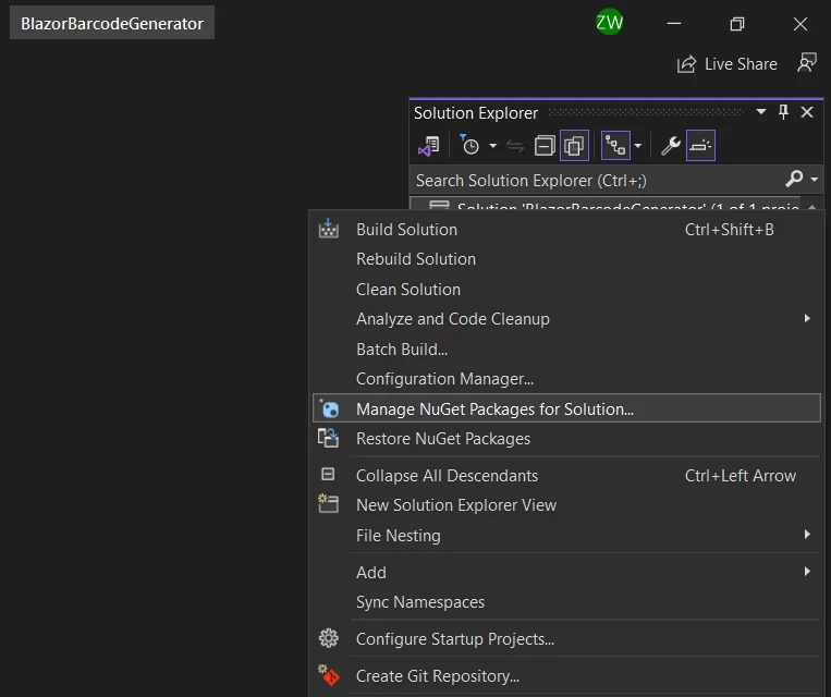 使用IRONBARCODE 如何在Blazor中生成條碼 Jordi Bardia 更新:6月 22, 2025 下載 IronBarcode NuGet 下載 DLL 下載 開始免費試用 法學碩士副本 法學碩士副本 將頁面複製為 Markdown 格式,用於 LLMs 在 ChatGPT 中打開 請向 ChatGPT 諮詢此頁面 在雙子座打開 請向 Gemini 詢問此頁面 在雙子座打開 請向 Gemini 詢問此頁面 打開困惑 向 Perplexity 詢問有關此頁面的信息 分享 在 Facebook 上分享 分享到 X(Twitter) 在 LinkedIn 上分享 複製連結 電子郵件文章 條碼已成為現代商業營運中不可或缺的一部分。 它們簡化了庫存管理,增強了產品跟踪,並簡化了資料輸入流程。 將條碼產生功能整合到 Web 應用程式中非常有益,而微軟流行的 Web 框架 Blazor 提供了一個優秀的平台,可以無縫地實現這一點。 在本教程中,我們將探索如何使用功能強大的 IronBarcode 庫在 Blazor 框架內產生條碼。 您將學會如何輕鬆建立和自訂條碼,使您的 Blazor 應用程式更加靈活和高效。 IronBarcode。 IronBarcode是一個功能強大的 .NET 程式庫,旨在簡化在應用程式中建立條碼的過程。 它提供了一系列工具和功能,使開發人員能夠輕鬆產生各種類型的條碼。 無論您是需要為產品標籤、庫存管理或其他用途建立條碼,IronBarcode 都能讓這項任務變得簡單且有效率。 先決條件 在開始之前,請確保您已準備好以下必備條件: Visual Studio(或任何其他 IDE,如 Visual Studio Code)。 IronBarcode 已安裝。 具備 Blazor 和 C# 的基礎知識。 在 Visual Studio 中設定 Blazor Server 應用程式 Blazor Server 是使用 .NET 建立互動式 Web 應用程式的絕佳選擇。 微軟強大的整合開發環境 (IDE) Visual Studio 讓創建這些應用程式變得輕鬆方便。本文將使用 Visual Studio 建立一個 Blazor 伺服器應用程式。 如果您還沒有安裝 Visual Studio,可以從Visual Studio 網站下載。 建立新專案 點選"建立新項目"。 如何在 Blazor 中產生條碼:圖 1 - Visual Studio 中的"開始使用"對話方塊。 使用頂部的搜尋列搜尋"Blazor Server App"。 從專案範本清單中選擇"Blazor Server App",然後按一下"下一步"按鈕。 如何在 Blazor 中產生條碼:圖 2 - Visual Studio 中的"建立新專案"對話方塊。 配置 Blazor 應用程式 在"配置新項目"對話方塊中,您需要提供一些詳細資訊: -專案名稱:輸入 Blazor 應用程式的名稱。 -位置:選擇要儲存項目檔案的位置。 -解決方案名稱:您可以選擇更改包含項目的解決方案的名稱。 點擊"下一步"按鈕繼續。 如何在 Blazor 中產生條碼:圖 3 - Visual Studio 中的"設定新專案"對話方塊。 附加資訊 確保在下拉式選單中選擇".NET 6.0 (LTS)"。 如果你想為你的應用程式新增身份驗證功能,你可以從可用的選項中進行選擇。 Visual Studio 提供個人使用者帳號、工作或學校帳號等的範本。 如果您不需要立即進行身份驗證,也可以選擇"無"。 點選"建立"按鈕完成項目設定。 如何在 Blazor 中產生條碼:圖 4 - Visual Studio 中的"附加資訊"對話方塊。 安裝 IronBarcode 若要在 Visual Studio 中透過 NuGet 套件管理器為 Blazor 專案安裝 IronBarcode 庫,您可以依照下列步驟操作: 在 Visual Studio 解決方案資源管理器中以滑鼠右鍵按一下您的項目,然後選擇"管理 NuGet 套件"。 如何在 Blazor 中產生條碼:圖 5 - Visual Studio 中的 NuGet 套件管理器下拉選單。 在"NuGet 套件管理員"視窗中,確保您位於"瀏覽"標籤中。 在右上角的搜尋框中,輸入"IronBarcode",然後按 Enter 鍵。 如何在 Blazor 中產生條碼:圖 6 - NuGet 套件管理器視窗。 點選"安裝"按鈕,即可開始安裝程序。 完成上述設定後,請確保 IronBarcode 成功整合到您的專案中,方法是在程式碼中加入必要的 using 指令,並透過產生一個簡單的條碼進行測試: using IronBarCode; // Import the IronBarcode library namespace YourNamespace { public class BarcodeGenerator { public void GenerateBarcode() { // Creates a barcode with text "Hello World" BarcodeWriter.CreateBarcode("Hello World", BarcodeWriterEncoding.Code128) .SaveAsPng("barcode.png"); // Saves the barcode image as a PNG file } } } using IronBarCode; // Import the IronBarcode library namespace YourNamespace { public class BarcodeGenerator { public void GenerateBarcode() { // Creates a barcode with text "Hello World" BarcodeWriter.CreateBarcode("Hello World", BarcodeWriterEncoding.Code128) .SaveAsPng("barcode.png"); // Saves the barcode image as a PNG file } } } Imports IronBarCode ' Import the IronBarcode library Namespace YourNamespace Public Class BarcodeGenerator Public Sub GenerateBarcode() ' Creates a barcode with text "Hello World" BarcodeWriter.CreateBarcode("Hello World", BarcodeWriterEncoding.Code128).SaveAsPng("barcode.png") ' Saves the barcode image as a PNG file End Sub End Class End Namespace $vbLabelText $csharpLabel 請務必將"YourNamespace"替換為您的應用程式的相應命名空間。 上面的程式碼建立了一個包含文字"Hello World"的"Code128"條碼,並將其作為PNG檔案保存在專案目錄中。 本部分現已無拼字和文法錯誤。 此外,根據嵌入的原始程式碼,圍欄程式碼區塊語言已更正為"cs"。 常見問題解答 如何將條碼生成整合到 Blazor 應用程式中? 您可以透過使用 IronBarcode 函式庫,將條碼生成整合至 Blazor 應用程式中。首先在您的Blazor專案中透過NuGet套件管理員安裝IronBarcode。然後,使用該函式庫的 BarcodeWriter class 來產生所需文字或資料的條碼。 在 Blazor 中開始一個 BarCode 專案需要哪些必要的工具? 要在Blazor中開始一個條碼專案,您需要一個集成開發環境(IDE),如Visual Studio或Visual Studio Code,IronBarcode庫,以及Blazor和C#的基本知