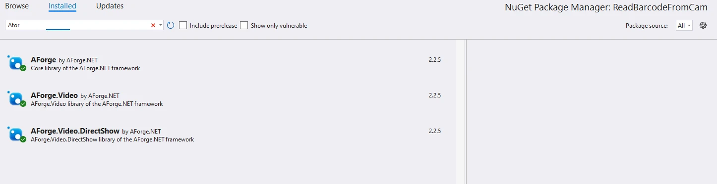 使用IRONBARCODE 如何從VB .NET中的攝像頭讀取條碼 Jordi Bardia 更新:7月 28, 2025 下載 IronBarcode NuGet 下載 DLL 下載 開始免費試用 法學碩士副本 法學碩士副本 將頁面複製為 Markdown 格式,用於 LLMs 在 ChatGPT 中打開 請向 ChatGPT 諮詢此頁面 在雙子座打開 請向 Gemini 詢問此頁面 在雙子座打開 請向 Gemini 詢問此頁面 打開困惑 向 Perplexity 詢問有關此頁面的信息 分享 在 Facebook 上分享 分享到 X(Twitter) 在 LinkedIn 上分享 複製連結 電子郵件文章 在科技快速發展的今天,條碼掃描設備已成為零售、物流、醫療保健、製造業等各行業不可或缺的一部分。 微軟的 Visual Basic .NET 是一種功能強大且用途廣泛的程式語言,它為開發人員提供了一個強大的框架,用於建立可以直接從相機畫面讀取條碼的應用程式。 本文旨在提供一個全面的條碼閱讀器教程,該教程使用 Visual Basic 和Iron Software的IronBarcode庫,透過相機實現條碼閱讀。 IronBarcode 庫可讓您讀取條碼影像文件,以及從攝影機串流傳輸的影像。 它還支援從 PDF 文件中讀取條碼。 它一次最多只能掃描一個條碼。在 VB.NET 條碼讀取器 SDK 中讀取條碼映像時,需要指定條碼類型。 如何在VB.NET讀取攝影機拍攝的條碼 在 Visual Studio 中建立一個新的 VB.NET 專案 安裝 IronBarcode 庫並套用到您的專案中 使用 AForge 庫從相機取得條碼影像。 使用 IronBarcode 解碼條碼影像 先決條件 Visual Studio:確保您已安裝 Visual Studio 或任何其他 VB.NET 開發環境。 2.相容的攝影機:確保所述攝影機已連接到您的裝置。 NuGet 套件管理器:確保您可以使用 NuGet 管理專案中的套件。 步驟 1:在 Visual Studio 中建立一個新的 Visual Basic .NET 專案 創建一個新的 VB.NET Windows Forms 應用程式(或使用現有專案),在您希望將從相機讀取條碼的代碼託管的地方。 如何在 VB.NET 中從相機讀取條碼:圖 1 - 建立新的 VB.NET Windows 窗體應用程式 下一步,您可以提供解決方案名稱和專案名稱。 如何在 VB.NET 中從相機讀取條碼:圖 2 - 使用名稱和解決方案配置項目 選擇 .NET 版本,然後按一下"建立"按鈕。 步驟 2:安裝 IronBarcode 庫 開啟您的 VB.NET 項目,並使用NuGet套件管理器控制台安裝 IronBarcode 庫: Install-Package BarCode 如何在 VB.NET 中從相機讀取條碼:圖 3 - 安裝 NuGet IronBarcode 套件 也可以使用 Visual Studio 的 NuGet 套件管理器安裝 NuGet 套件,如下圖所示。 如何在 VB.NET 中從相機讀取條碼:圖 4 - 透過 Visual Studio 的套件管理器安裝 IronBarcode 步驟三:從攝影機讀取條碼 要掃描視訊串流並從攝影機擷取影像,我們需要 AForge 庫。 請依照以下步驟從 NuGet 套件管理器安裝。 如何在 VB.NET 中從相機讀取條碼:圖 5 - Visual Studio 套件管理器中提供的 AForge 庫包 下一步是將 ToolBox 中的 PictureBox 控制項新增到表單中。 這是用來從相機捕捉影像的。 如何在 VB.NET 中從相機讀取條碼:圖 6 - 新增 PictureBox 控件 然後將以下程式碼複製到窗體應用程式中,並從 IronBarcode 建立 VB .NET 條碼讀取器元件。 Imports IronBarCode Imports AForge.Video Imports AForge.Video.DirectShow Public Class Form1 Private videoDevices As FilterInfoCollection Private videoSource As VideoCaptureDevice ' Event handler for form load Private Sub MainForm_Load(sender As Object, e As EventArgs) Handles MyBase.Load videoDevices = New FilterInfoCollection(FilterCategory.VideoInputDevice) If videoDevices.Count > 0 Then videoSource = New VideoCaptureDevice(videoDevices(0).MonikerString) AddHandler videoSource.NewFrame, AddressOf VideoSource_NewFrame videoSource.Start() Else MessageBox.Show("No video devices found.") Close() End If End Sub ' Event handler for capturing and processing new frame from the video source Private Sub VideoSource_NewFrame(sender As Object, eventArgs As NewFrameEventArgs) pictureBoxCamera.Image = DirectCast(eventArgs.Frame.Clone(), Bitmap) ' Process each frame for barcode recognition Dim image = DirectCast(pictureBoxCamera.Image, Bitmap) Dim result = BarcodeReader.QuicklyReadOneBarcode(image, BarcodeEncoding.QRCode Or BarcodeEncoding.Code128) If result IsNot Nothing Then ' Barcode found, handle the new result (e.g., display the barcode value) Dim barcodeValue As String = result.Text ShowBarcodeResult(barcodeValue) End If End Sub ' Method to display the barcode result Private Sub ShowBarcodeResult(barcodeValue As String) ' Invoke on UI thread to update UI controls If InvokeRequired Then Invoke(New Action(Of String)(AddressOf ShowBarcodeResult), barcodeValue) Else ' Display the barcode value in a MessageBox or any other UI element MessageBox.Show("Barcode Value: " & barcodeValue, "Barcode Detected") End If End Sub ' Event handler for form closing Private Sub MainForm_FormClosing(sender As Object, e As FormClosingEventArgs) Handles MyBase.FormClosing If videoSource IsNot Nothing AndAlso videoSource.IsRunning Then videoSource.SignalToStop() videoSource.WaitForStop() End If End Sub End Class Imports IronBarCode Imports AForge.Video Imports AForge.Video.DirectShow Public Class Form1 Private videoDevices As FilterInfoCollection Private videoSource As VideoCaptureDevice ' Event handler for form load Private Sub MainForm_Load(sender As Object, e As EventArgs) Handles MyBase.Load videoDevices = New FilterInfoCollection(FilterCategory.VideoInputDevice) If videoDevices.Count > 0 Then videoSource = New VideoCaptureDevice(videoDevices(0).MonikerString) AddHandler videoSource.NewFrame, AddressOf VideoSource_NewFrame videoSource.Start() Else MessageBox.Show("No video devices found.") Close() End If End Sub ' Event handler for capturing and processing new frame from the video source Private Sub VideoSource_NewFrame(sender As Object, eventArgs As NewFrameEventAr