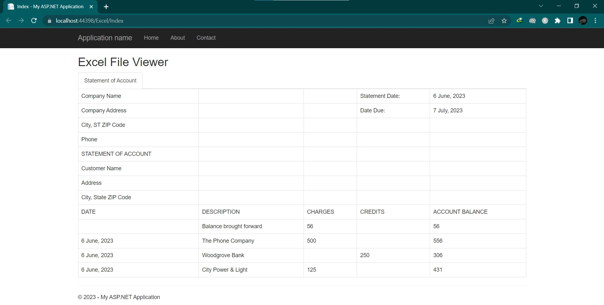 使用 IRONXL 如何在 ASP.NET 中查看 Excel Jordi Bardia 更新:6月 22, 2025 下載 IronXL NuGet 下載 DLL 下載 開始免費試用 法學碩士副本 法學碩士副本 將頁面複製為 Markdown 格式,用於 LLMs 在 ChatGPT 中打開 請向 ChatGPT 諮詢此頁面 在雙子座打開 請向 Gemini 詢問此頁面 在雙子座打開 請向 Gemini 詢問此頁面 打開困惑 向 Perplexity 詢問有關此頁面的信息 分享 在 Facebook 上分享 分享到 X(Twitter) 在 LinkedIn 上分享 複製連結 電子郵件文章 本教學將全面示範如何使用 ASP.NET MVC 和 IronXL 建立 Excel 檢視器。 此檢視器將使使用者能夠直接從其網頁上顯示、編輯和瀏覽 Excel 文件。 IronXL是什麼? IronXL是一個功能強大的 .NET 程式庫,提供了大量與 Excel 操作相關的功能。 它提供了一個簡化的 API,使 .NET 開發人員能夠以各種文件格式(包括 XLS、XLSX、CSV 等)編寫、操作和讀取 Excel 文件。 使用 IronXL,您可以讀取 Excel 檔案、提取資料、新增或編輯工作表、建立或修改行和列、套用公式、儲存變更等等。 所有這些操作都不需要在您的電腦上安裝 Microsoft Excel 即可完成。 IronXL 支援影像、樣式、條件格式和其他複雜的 Excel 功能,使其成為 .NET Excel 操作的綜合解決方案。 它非常適合處理 ASP.NET MVC 應用程式的資料來源和電子表格需求。 IronXL 庫將用於在 ASP.NET Web 應用程式中檢視 Excel 檔案。 先決條件 具備 ASP.NET MVC 的基本知識 您的電腦上已安裝 Visual Studio 已安裝IronXL庫。 您可以在他們的官方文件中找到安裝指南。 開始 首先,讓我們在 Visual Studio 中建立一個新的 ASP.NET MVC 專案。 1.開啟 Visual Studio。 點選檔案 > 新建 > 項目。 在新專案視窗中,選擇ASP.NET Web 應用程式 (.NET Framework)範本。 如何在 ASP.NET 中查看 Excel,圖 1:在 Visual Studio 中建立一個新的 ASP.NET Web 應用程式 在 Visual Studio 中建立一個新的 ASP.NET Web 應用程式 將項目命名為ExcelViewer ,選擇項目位置,然後按一下"建立"按鈕。 如何在 ASP.NET 中查看 Excel,圖 2:配置您的項目 配置您的項目 本文將重點放在如何在 ASP.NET MVC 應用程式中實作 Excel 檢視器功能。 將 IronXL 加入您的專案中 為了處理 Excel 檔案格式(如 .xls、.xlsx 和 .csv),IronXL 提供了全面的功能來載入 Excel 文件、讀取、寫入甚至修改 Excel 資料。 它支援公式、圖像、格式設定等等。 在解決方案資源管理器中以滑鼠右鍵按一下您的項目,然後導覽至"管理 NuGet 套件" 。 在NuGet 套件管理員中,搜尋IronXL.Excel 。 點擊"安裝"將其新增至您的專案。 如何在 ASP.NET 中查看 Excel,圖 3:在 NuGet 套件管理器 UI 中搜尋並安裝 IronXL 套件 在 NuGet 套件管理器 UI 中搜尋並安裝 IronXL 套件。 您也可以使用軟體套件管理器控制台,透過以下命令安裝 IronXL: Install-Package IronXL.Excel 如何在 ASP.NET 中查看 Excel,圖 4:從套件管理器控制台安裝 IronXL 程式包 從軟體套件管理器控制台安裝 IronXL 軟體包 IronXL 安裝完成後,我們繼續進行下一步。 建築模型 ExcelModel 第一步是為 Excel 資料建立模型。 ExcelModel類別將表示單一 Excel 工作表,並將包含工作表名稱和 Excel 工作表中的資料。 namespace Excel_File_Viewer_IronXL.Models { public class ExcelModel { public string SheetName { get; set; } // Data is a list of string arrays, each array represents a row in the sheet. public List<string[]> Data { get; set; } } } namespace Excel_File_Viewer_IronXL.Models { public class ExcelModel { public string SheetName { get; set; } // Data is a list of string arrays, each array represents a row in the sheet. public List<string[]> Data { get; set; } } } Namespace Excel_File_Viewer_IronXL.Models Public Class ExcelModel Public Property SheetName() As String ' Data is a list of string arrays, each array represents a row in the sheet. Public Property Data() As List(Of String()) End Class End Namespace $vbLabelText $csharpLabel ExcelModel由兩個屬性定義, SheetName和Data 。 SheetName是一個簡單的字串,用於保存每個 Excel 工作表的名稱。 Data是一個字串數組列表,用於儲存 Excel 表格中每一行的資料。 ExcelViewModel 接下來,我們來建立ExcelViewModel 。 該模型是一個包裝器,其中包含一個檔案、一條訊息和一個ExcelModel列表,該列表表示檔案中所有工作表中的資料。 using Microsoft.AspNetCore.Http; using System.Collections.Generic; namespace Excel_File_Viewer_IronXL.Models { public class ExcelViewModel { public IFormFile File { get; set; } // For uploading Excel file public string Message { get; set; } // Message for storing success/error messages public List<ExcelModel> ExcelData { get; set; } // List to store data from all sheets } } using Microsoft.AspNetCore.Http; using System.Collections.Generic; namespace Excel_File_Viewer_IronXL.Models { public class ExcelViewModel { public IFormFile File { get; set; } // For uploading Excel file public string Message { get; set; } // Message for storing success/error messages public List<ExcelModel> ExcelData { get; set; } // List to store data from all sheets } } Imports Microsoft.AspNetCore.Http Imports System.Collections.Generic Namespace Excel_File_Viewer_IronXL.Models Public Class ExcelViewModel Public Property File() As IFormFile ' - For uploading Excel file Public Property Message() As String ' - Message for storing success/error messages Public Property ExcelData() As List(Of ExcelModel) ' - List to store data from all sheets End Class End Namespace $vbLabelText $csharpLabel 這個類別將用作視圖模型。 它具有用於文件上傳的IFormFile屬性、用於顯示任何訊息的Message字串以及一個List<ExcelModel>儲存檢索到的Excel資料。 5. 建立ExcelController以載入 Excel 檔