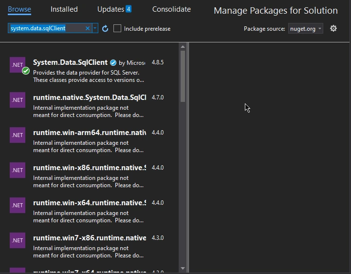 使用 IRONXL 使用 C# 讀取 Excel 數據並插入數據庫 Jordi Bardia 更新:6月 22, 2025 下載 IronXL NuGet 下載 DLL 下載 開始免費試用 法學碩士副本 法學碩士副本 將頁面複製為 Markdown 格式,用於 LLMs 在 ChatGPT 中打開 請向 ChatGPT 諮詢此頁面 在雙子座打開 請向 Gemini 詢問此頁面 在雙子座打開 請向 Gemini 詢問此頁面 打開困惑 向 Perplexity 詢問有關此頁面的信息 分享 在 Facebook 上分享 分享到 X(Twitter) 在 LinkedIn 上分享 複製連結 電子郵件文章 本文將探討如何使用 IronXL(一個 C# Excel 庫)從 Excel 檔案讀取資料並將其插入資料庫表中。 1. IronXL IronXL 是一個功能強大的軟體庫,專為 .NET 開發人員設計,為他們提供易於使用的 API,以便在 .NET 應用程式中讀取、寫入和操作 Excel 檔案。 它提供了一套全面的功能,用於建立、編輯和匯出 Excel 電子表格,而無需在目標電腦上安裝 Microsoft Office 或 Excel。該程式庫支援多種檔案格式,包括 XLS、XLSX、CSV、TSV 等,可讓開發人員輕鬆建立可部署到任何位置的基於 Excel 的應用程式。 IronXL 還提供圖表建立、資料視覺化和資料分析等進階功能,以簡化從小到大專案的開發流程。 2. 先決條件 在使用 IronXL 庫從 Excel 檔案寫入資料庫之前,必須滿足某些先決條件。 這些工具包括 您的電腦上已安裝 Visual Studio,以便建立 C# 專案。 在建立 C# 專案之前,請確保您的系統上已安裝 ASP.NET。 在您的系統上安裝 IronXL 庫以匯出資料。 您可以透過從 Visual Studio 中的 NuGet 套件管理器下載 IronXL NuGet 套件來取得它。 在 Visual Studio 中安裝 SQL。 3.在 Visual Studio 中建立新專案 在使用 IronXL 程式庫執行與 Excel 相關的操作之前,您需要在 Visual Studio 中建立一個 .NET 專案。 雖然任何版本的 Visual Studio 都相容,但建議使用最新版本。 您可以根據專案需求,從各種專案範本中進行選擇,例如 Windows Forms 和 ASP.NET。 本教學建議使用控制台應用程式專案範本來示範如何使用 IronXL。 如何在 C# 中讀取 Excel 資料並將其插入資料庫表,圖 1:建立新專案窗口 建立一個新項目 選擇項目類型後,需要為項目命名並選擇其位置。 您也可以為專案指定首選框架,例如 .NET Core 6。 如何在 C# 中讀取 Excel 資料並將其插入資料庫表,圖 2:專案配置 專案配置 建立新專案後,您可以存取 program.cs 文件,在其中編寫程式碼並執行應用程式。 如何在 C# 中讀取 Excel 資料並將其插入資料庫表,圖 3:已開啟程式碼的項目 專案代碼已打開 現在 Visual Studio 專案已經建立完成,讓我們安裝 IronXL。 4. 安裝 IronXL IronXL 庫可以透過多種方式下載和安裝,但本文將介紹兩種最簡單的方法: 在 Visual Studio 中使用 NuGet 套件。 使用 Visual Studio Command-Line。 4.1 使用 Visual Studio 要安裝 IronXL 庫,第一種方法是在 Visual Studio 中使用 NuGet 套件管理器。 只需開啟 NuGet 套件管理器,然後在"瀏覽"標籤中搜尋 IronXL 即可。 在搜尋結果中找到 IronXL 後,選擇它並繼續進行安裝。 安裝完成後,您就可以在專案中使用 IronXL 庫了。 以下螢幕截圖顯示如何在 Visual Studio 中開啟 NuGet 套件管理器。 如何在 C# 中讀取 Excel 資料並將其插入資料庫表,圖 4:NuGet 套件管理器 NuGet 套件管理器 以下截圖顯示了搜尋結果中的 IronXL: 如何在 C# 中讀取 Excel 資料並將其插入資料庫表,圖 5:IronXL 搜尋結果 IronXL 搜尋結果 4.2 使用 Visual Studio 命令列。 許多開發者喜歡使用命令列介面安裝軟體包。 若要使用命令列安裝 IronXL,請依照下列步驟操作: 在 Visual Studio 中,前往"工具" > "NuGet 套件管理器" > "套件管理器控制台" 。 在程式包管理器控制台標籤中輸入以下代碼: Install-Package IronXL Install-Package IronXL SHELL 該軟體包將被下載並安裝到當前專案中。 如何在 C# 中讀取 Excel 資料並將其插入資料庫表,圖 6:透過命令列安裝 透過命令列安裝 5. 安裝並設定 SQL Server 資料庫 要將 SQL Server 資料庫表安裝並整合到您的 C# 專案中,首先,請前往 NuGet 套件管理器,搜尋System.Data.SqlClient ,然後安裝它。 如何在 C# 中讀取 Excel 資料並將其插入資料庫表?圖 7:在 NuGet 套件管理器 UI 中搜尋並安裝 SqlClient 在 NuGet 套件管理器 UI 中搜尋並安裝 SqlClient。 安裝完成後,轉到項目選單並點擊"新增項目"。 如何在 C# 中讀取 Excel 資料並將其插入資料庫表,圖 8:新增項 新增項目 將出現一個新視窗。 從側邊選單中選擇數據,然後從清單中按一下"基於服務的資料庫"。為資料庫輸入一個合適的名稱,然後按一下"新增"按鈕。 如何在 C# 中讀取 Excel 資料並將其插入資料庫表,圖 9:選擇基於服務的資料庫 選擇基於服務的資料庫 然後,在解決方案資源管理器中,以滑鼠右鍵按一下新建的資料庫,然後選擇"開啟"。 這將打開一個新的側邊欄。 圖 10:如何在 C# 中讀取 Excel 資料並將其插入資料庫表:右鍵單擊並選擇"開啟" 右鍵單擊並選擇"打開" 在新側邊欄中,點擊您的資料庫並轉到其屬性。 從那裡複製連接字串。 如何在 C# 中讀取 Excel 資料並將其插入資料庫表,圖 11:右鍵單擊並選擇"屬性" 右鍵單擊並選擇"屬性" 如何在 C# 中讀取 Excel 資料並將其插入資料庫表,圖 12:處理連接字串 處理連接字串 複製連線首選項後,按一下資料庫實例以開啟新清單。右鍵單擊表格資料夾,然後選擇"新增資料表"。 如何在 C# 中讀取 Excel 資料並將其插入資料庫表,圖 13:新增表 新增表格 若要在資料庫中建立新表,請依照下列步驟操作: 開啟一個新的資料表設計頁
