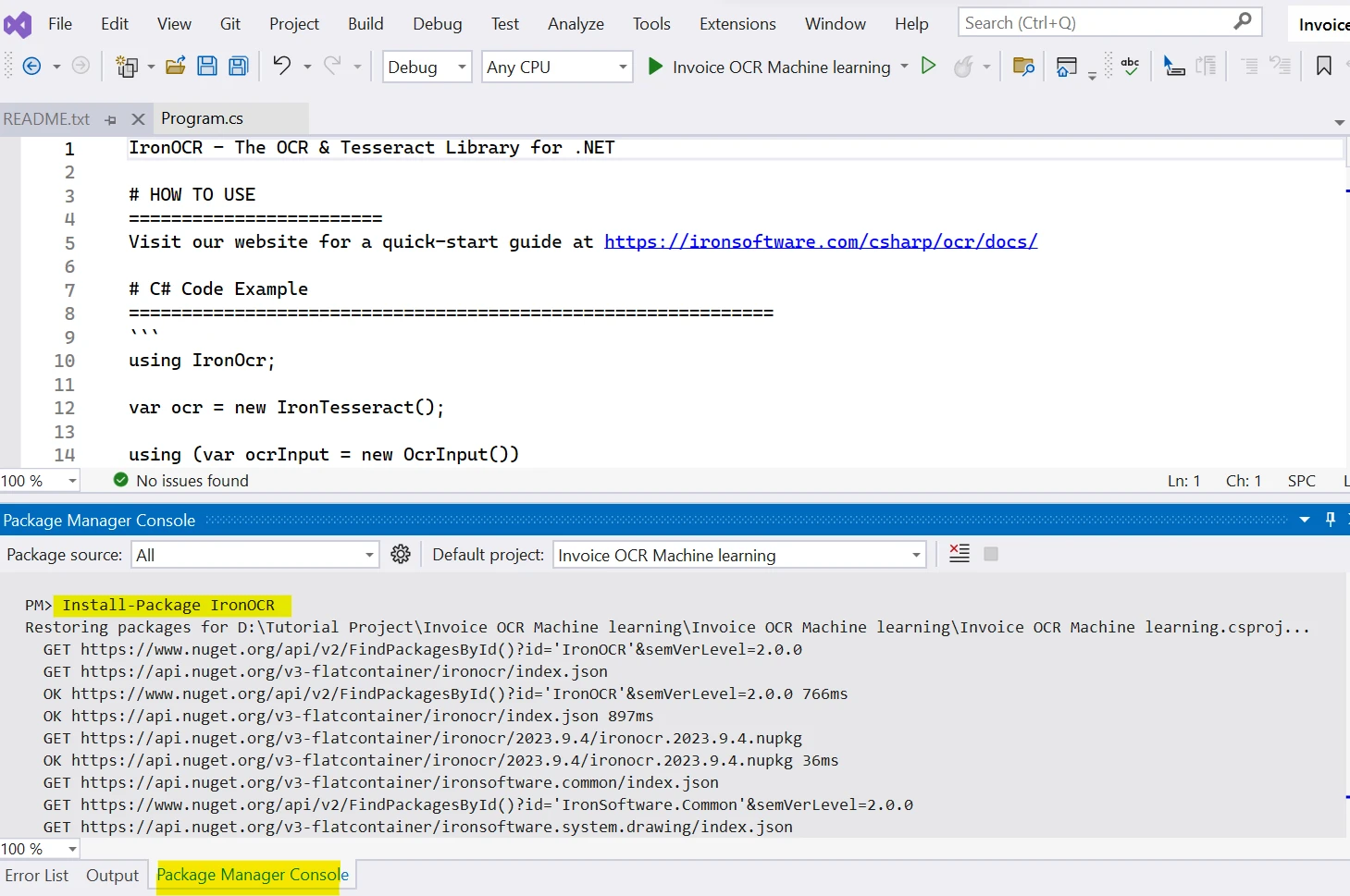 OCR 工具 發票 OCR 機器學習(逐步教學) Kannapat Udonpant 更新:6月 22, 2025 下載 IronOCR NuGet 下載 DLL 下載 Windows 安裝程式 開始免費試用 法學碩士副本 法學碩士副本 將頁面複製為 Markdown 格式,用於 LLMs 在 ChatGPT 中打開 請向 ChatGPT 諮詢此頁面 在雙子座打開 請向 Gemini 詢問此頁面 在雙子座打開 請向 Gemini 詢問此頁面 打開困惑 向 Perplexity 詢問有關此頁面的信息 分享 在 Facebook 上分享 分享到 X(Twitter) 在 LinkedIn 上分享 複製連結 電子郵件文章 在當今快節奏的商業環境中,任務和非結構化資料的自動化已成為提高效率和減少人為錯誤的關鍵策略。 其中一項任務是從發票或採購訂單中提取訊息,這個過程傳統上需要大量的人工投入。 然而,由於機器學習、深度學習模型和光學字元辨識 (OCR) 軟體技術的進步,企業現在可以使用 IronOCR 等工具簡化發票資訊擷取流程。 在本文中,我們將探討如何利用機器學習和 IronOCR 來徹底改變發票處理方式。 了解發票 OCR 工具 OCR 技術已經存在一段時間了,但隨著機器學習的出現,其在發票處理和資料提取方面的應用得到了顯著提升。 OCR(光學字元辨識)是一種將不同類型的文件(例如包含發票資訊的掃描紙本文件、PDF 文件、財務文件或數位相機拍攝的輸入影像)轉換為可編輯和可搜尋資料的技術。 它本質上是利用影像預處理技術將影像中的文字轉換為機器可讀文字。 IronOCR是一個功能強大的 OCR 庫,它基於機器學習演算法構建,可以整合到各種應用程式和程式語言中,使其成為發票處理的多功能工具。 透過使用 IronOCR,企業可以自動提取發票數據,如發票號碼、日期、供應商詳情和項目行,準確性顯著。 使用 IronOCR 進行發票 OCR 的優勢 使用IronOCR 進行發票處理具有許多優勢,可顯著提高貴公司財務營運(例如應付帳款)的效率和準確性。 讓我們更詳細地探討一下這些好處: 1. 準確度和減少誤差 IronOCR 利用先進的機器學習演算法,準確地識別和提取發票中的文字。 這樣可以最大限度地減少資料輸入過程中人為錯誤的發生機率,確保關鍵財務資訊得到正確記錄。 2. 節省時間和成本 使用 IronOCR 實現發票處理自動化,可大幅減少手動資料輸入所需的時間和資源。 透過優化員工時間並減少對體力勞動的需求,這可以大幅節省成本。 3. 效率提升 IronOCR能夠快速且有效率地處理大量發票。 這樣就省去了員工手動輸入每張發票資料的麻煩,使他們能夠專注於更具戰略意義的任務。 4. 可擴展性 IronOCR 具有可擴展性,能夠隨著您的業務擴展而處理不斷增長的發票數量。 您無需擔心工作量增加和邊界框過多導致發票文件處理系統不堪重負。 5. 全球影響力 IronOCR 支援 125 多種語言,使企業能夠處理來自世界各地供應商和客戶的發票。 無論發票是用何種語言書寫的,IronOCR 都能準確地提取資料。 6. 多格式支持 IronOCR 可以處理各種格式的發票,包括掃描影像、基於影像的 PDF 和基於文字的 PDF。 這種多功能性確保您可以輕鬆處理來自不同來源和格式的發票。 7. 客製化和資料提取 您可以自訂 IronOCR,從發票中提取特定資料字段,例如發票編號、日期、供應商詳細資料和行項目資訊。 這種程度的客製化使您可以根據您的特定業務需求來客製化解決方案。 8. 合規性和審計追踪 使用 IronOCR 進行自動發票處理有助於保持準確的記錄並提供審計追蹤。 這對於遵守財務法規和簡化審計流程至關重要。 9. 縮短發票處理週期 IronOCR 的精簡和自動化特性減少了處理發票所需的時間,從而縮短了發票處理週期。 這可以加快向供應商付款的速度,並改善雙方關係。 10. 增強型資料分析 透過將發票資料以結構化的數位格式存儲,您可以進行更深入的資料分析。 這有助於識別趨勢、優化支出並做出明智的財務決策。 實施 IronOCR 進行發票處理 若要實施 IronOCR 進行發票處理,請依照以下一般步驟操作: 步驟 1:建立一個新的 C 首先,在您首選的開發環境(例如 Visual Studio 或 Visual Studio Code)中建立一個新的 C# 專案或開啟一個現有專案。 本次示範我使用的是 Visual Studio 2022 IDE 和控制台應用程式。 您可以在任何專案類型中使用相同的實作,例如 ASP.NET Web API、ASP.NET MVC、ASP.NET Web Forms 或任何 .NET Framework。 發票 OCR 機器學習(逐步教學):圖 1 - C# 項目 步驟 2:透過 NuGet 套件管理器安裝 IronOCR 要在您的專案中使用 IronOCR,您需要安裝 IronOCR NuGet 套件。 以下是如何做到這一點: 1.開啟 NuGet 套件管理員控制台。 在 Visual Studio 中,您可以在"工具">"NuGet 套件管理器">"套件管理器控制台"下找到它。 [發票 OCR 機器學習(逐步教學):圖 2 - 軟體包管理器控制台](/static-assets/ocr/blog/invoice-ocr-machine-learning-tutorial/invoice-ocr-machine-learning-tutorial-2.webp) 執行以下命令安裝 IronOCR 軟體包: Install-Package IronOcr 發票 OCR 機器學習(逐步教學):圖 3 - IronOCR 安裝 等待軟體包安裝完成。 完成後,您就可以在專案中使用 IronOCR 了。 步驟 3:在 C# 中實作 OCR 現在,讓我們編寫 C# 程式碼,使用 IronOCR 對發票執行 OCR 操作。 我們將使用以下發票樣本作為範例。 發票OCR機器學習(逐步教學):圖4 - 發票範本範例 以下範例程式碼將以發票圖像作為輸入,並從發票中提取數據,例如發票號碼、採購訂單等。 // Define the path to the invoice image string invoicePath = @"D:\Invoices\SampleInvoice.png"; // Create an instance of IronTesseract for OCR processing IronTesseract ocr = new