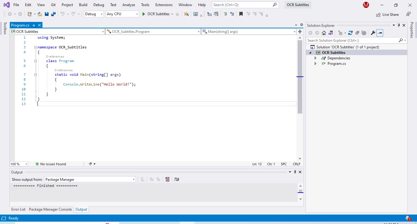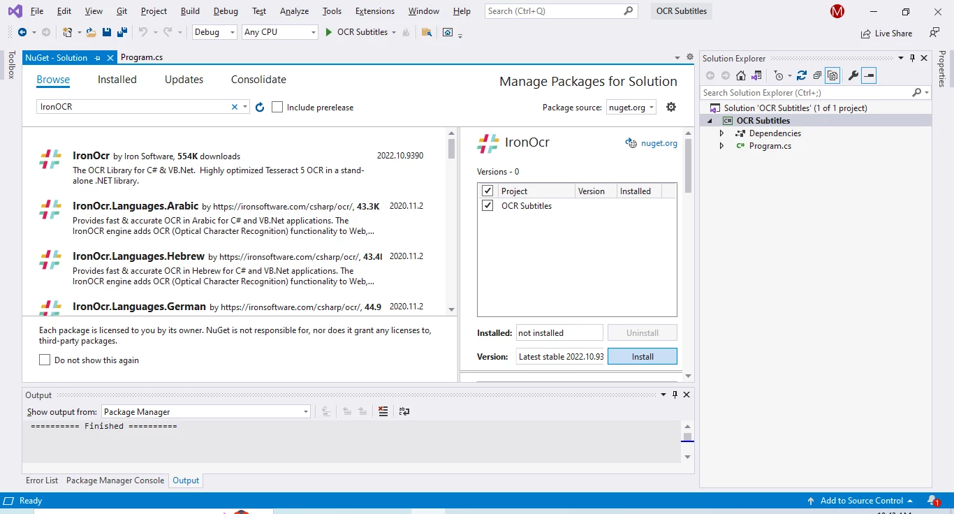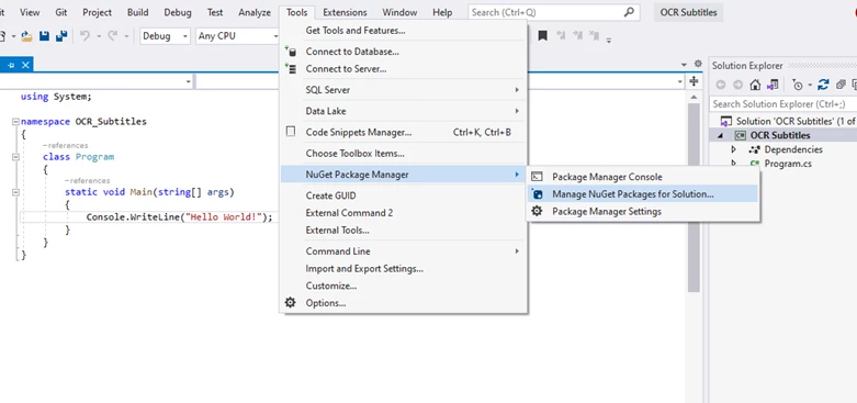 使用 IRONOCR 如何在 C# 中對字幕進行 OCR(教學) Kannapat Udonpant 更新:8月 24, 2025 下載 IronOCR NuGet 下載 DLL 下載 Windows 安裝程式 開始免費試用 法學碩士副本 法學碩士副本 將頁面複製為 Markdown 格式,用於 LLMs 在 ChatGPT 中打開 請向 ChatGPT 諮詢此頁面 在雙子座打開 請向 Gemini 詢問此頁面 在雙子座打開 請向 Gemini 詢問此頁面 打開困惑 向 Perplexity 詢問有關此頁面的信息 分享 在 Facebook 上分享 分享到 X(Twitter) 在 LinkedIn 上分享 複製連結 電子郵件文章 在本教程中,我們將學習如何從影片檔案中提取硬編碼字幕。 我們將選取一個視訊檔案作為範例,並將其中硬編碼的字幕提取到一個文字檔案中。我們將開發一個 C# .NET 程序,利用 OCR 技術提取這些硬編碼的字幕。 我會盡量讓本教學簡單易懂,以便即使是 C# 程式設計初學者也能理解。 我們需要一個高效的光學字元辨識(OCR)引擎,能夠處理影片並取得字幕文件,而無需考慮字幕語言。 有很多圖書館提供OCR識別結果。 有些函式庫是付費的,有些函式庫使用起來很困難,有些函式庫效率不高或不準確,因此很難找到一個免費、有效率、易用且能提供準確結果的函式庫。 IronOCR 對開發者免費,並為商業用途提供一個月的免費試用期。 它支援超過 150 種語言,並且比大多數其他 OCR 庫提供更高的準確率。 它也高效且易於使用。 我們將使用這個庫進行演示。 如何在 C# 中進行 OCR 字幕識別 安裝 C# 庫以對字幕執行 OCR 識別。 將帶有字幕的圖像匯入到新的OcrInput實例中 透過應用選定的濾波器對影像進行預處理。 指定影像中字幕的位置,以提高OCR效能和準確性 將檢索到的文字匯出為文字文件 IronOCR。 IronOCR是由 Iron Software 開發和維護的函式庫,它可以幫助 C# 軟體工程師在 .NET 專案中執行 OCR、條碼掃描和文字擷取。 IronOCR 的功能包括: 讀取多種格式的文本,例如圖像(JPEG、PNG、BMP)、 GIF 、 TIF/TIFF 、串流媒體和PDF。 使用多種濾鏡(例如去斜、降噪、二值化、增強解析度、膨脹等)校正低品質掃描件和照片 -支援讀取 20 多種不同格式的條碼以及二維碼 採用最新版本的 Tesseract OCR,其效能遠超同類其他函式庫。 匯出可搜尋的 PDF、hOCR / HTML 匯出和圖片內容文字。 讓我們開發一個讀取車牌號碼的演示應用程式。 建立一個 Visual Studio 項目 第一步是建立一個新專案。 開啟 Visual Studio。 點選"建立新專案" ,然後選擇"控制台應用程式"專案範本。 點擊"下一步"按鈕,並為項目命名(我將其命名為"OCR 字幕",您可以根據自己的喜好命名)。 點選"下一步"按鈕,然後選擇目標框架。 最後,點擊"建立"按鈕建立項目。 項目將按如下所示建立。 如何在 C# 中進行 OCR 字幕辨識(教學),圖 1:在 Visual Studio 中建立新項目 在 Visual Studio 中建立新項目 現在,我們需要安裝 IronOCR 庫才能在我們的專案中使用它。 最簡單的方法是透過 NuGet 套件管理器為解決方案安裝。 安裝 IronOCR NuGet 套件 點選頂部功能表列中的"工具" ,然後選擇"NuGet 套件管理器" > "管理解決方案的 NuGet 套件" ,如下圖所示。 如何在 C# 中進行 OCR 字幕辨識(教學),圖 2:在 Visual Studio 中安裝 IronOCR 在 Visual Studio 中安裝 IronOCR 將出現以下視窗。 如何在 C# 中進行 OCR 字幕辨識(教學),圖 3:Visual Studio NuGet 套件管理器 UI Visual Studio NuGet 套件管理器 UI 點擊瀏覽,搜尋 IronOCR。 選擇 IronOCR 軟體包,然後按一下"安裝"按鈕,如下圖所示。 如何在 C# 中進行 OCR 字幕辨識(教學),圖 4:在 NuGet 套件管理器 UI 中搜尋 IronOCR 在 NuGet 套件管理器 UI 中搜尋 IronOCR IronOCR庫將安裝完畢,即可使用。 提取硬編碼字幕 讓我們寫一個程式來提取硬編碼的字幕。 我們將使用以下螢幕截圖來提取字幕。 如何在 C# 中進行 OCR 字幕識別(教程),圖 5:範例視訊截圖,從中提取文本 視訊截圖範例,將從中提取文本 新增以下命名空間: using IronOcr; using IronOcr; Imports IronOcr $vbLabelText $csharpLabel 在命名空間聲明下方編寫以下程式碼。 // Initialize IronTesseract object var ocr = new IronTesseract(); // Create an OCR Input using the specified image path using (var input = new OcrInput(@"D:\License Plate\plate3.jpg")) { // Perform OCR on the input image to extract text var result = ocr.Read(input); // Output the extracted text to the console Console.WriteLine(result.Text); } // Initialize IronTesseract object var ocr = new IronTesseract(); // Create an OCR Input using the specified image path using (var input = new OcrInput(@"D:\License Plate\plate3.jpg")) { // Perform OCR on the input image to extract text var result = ocr.Read(input); // Output the extracted text to the console Console.WriteLine(result.Text); } ' Initialize IronTesseract object Dim ocr = New IronTesseract() ' Create an OCR Input using the specified image path Using input = New OcrInput("D:\License Plate\plate3.jpg") ' Perform OCR on the input image to extract text Dim result = ocr.Read(input) ' Output the extracted text to the console Console.WriteLine(result.Text) End Using $vbLabelText $csharpLabel 上述程式碼的工作原理如下: 初始化IronTesseract物件。 它將創建一個IronTesseract的預設實例。 建立一個新的OcrInput對象,並填入輸入影像檔案或 PDF 文件。 OcrInput是首選的輸入類型,因為它允許對多頁文件進行 OCR,並且允許在 OCR 之前增強影像,以獲得更快、更準確的結果。 從 OCR 輸入物件讀取文字並傳回 OCR 結果物件。 ocr.Read將從給定的輸入螢幕截圖中提取字幕。 result.Text將傳回從給定輸入中提取的全部內容。 範例程式會在控