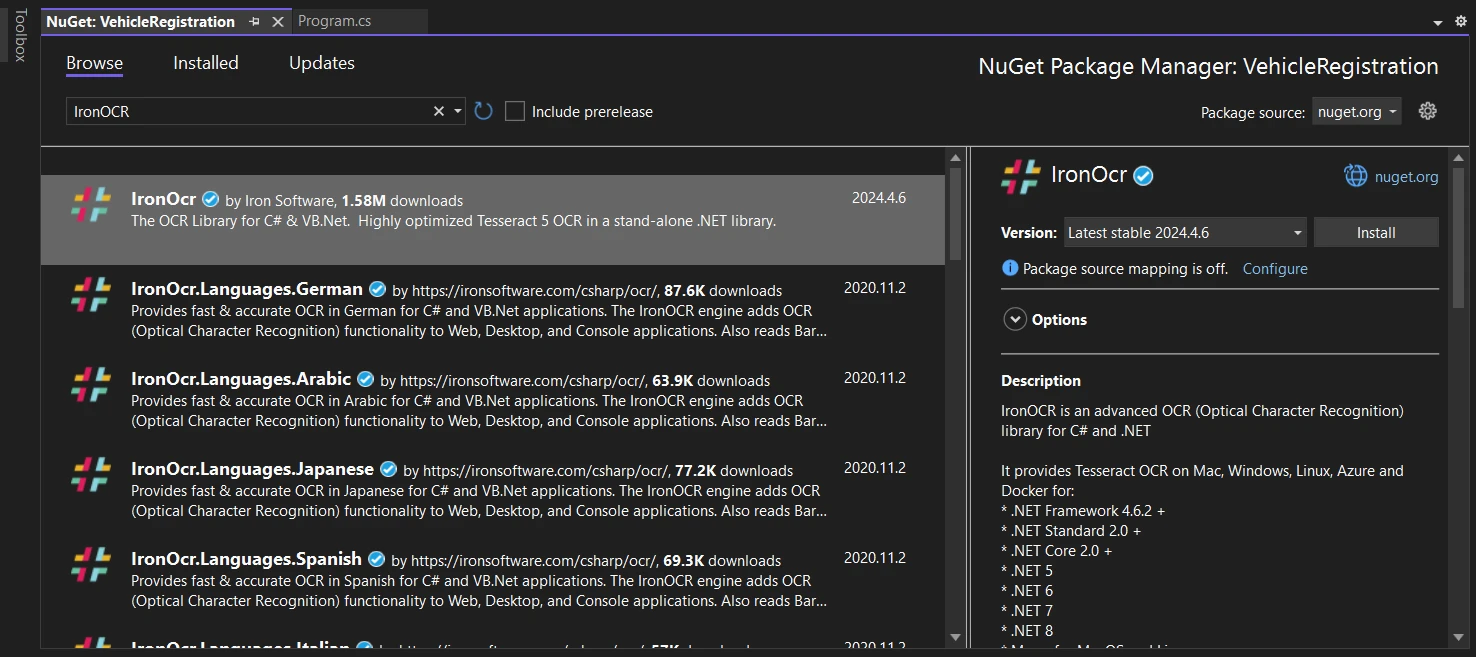 使用 IRONOCR 如何在 C# 中進行車輛註冊 OCR Kannapat Udonpant 更新:7月 28, 2025 下載 IronOCR NuGet 下載 DLL 下載 Windows 安裝程式 開始免費試用 法學碩士副本 法學碩士副本 將頁面複製為 Markdown 格式,用於 LLMs 在 ChatGPT 中打開 請向 ChatGPT 諮詢此頁面 在雙子座打開 請向 Gemini 詢問此頁面 在雙子座打開 請向 Gemini 詢問此頁面 打開困惑 向 Perplexity 詢問有關此頁面的信息 分享 在 Facebook 上分享 分享到 X(Twitter) 在 LinkedIn 上分享 複製連結 電子郵件文章 車輛登記號碼牌是任何車輛的重要組成部分,可作為法律和行政方面的唯一識別碼。 這些車牌通常包含字母數字字符,代表車輛登記號碼或車輛識別號碼、管轄區等信息,有時還包含其他詳細信息。 在汽車產業,車輛不斷通過各種檢查點,這需要高效、準確的資料擷取和處理方法。 高效提取這些資訊對於各種車輛登記應用至關重要,包括執法、停車管理和車輛追蹤。 在本文中,我們將探討如何使用光學字元辨識 (OCR) 技術有效地從具有不同車牌格式的車輛登記資訊中提取數據,重點是使用 C# 中的IronOCR庫實現此功能。 如何在 C# 中執行車輛登記 OCR 安裝IronOCR C# 庫,用於車輛登記 OCR(光學字元辨識)。 使用 OcrInput LoadImage方法匯入影像。 應用FindTextRegion來提升車牌自動辨識能力。 使用 IronTesseract Read方法擷取資料。 5.列印車輛登記文件數據,以便進行車牌識別。 自動車牌辨識的重要性 自動車牌辨識(ANPR)系統徹底改變了我們處理車輛登記文件或車輛登記證書的方式。 繁瑣的手動資料輸入時代已經一去不復返了,尤其是在處理像德國車輛登記文件這樣複雜的格式時。 借助車牌自動識別技術,車牌辨識變得非常高效,能夠準確地從不同格式的車牌中提取資料。 這項技術對於車輛登記應用來說尤其寶貴,因為速度和準確性對車輛登記至關重要。 透過自動收集車牌資訊(包括車輛識別號碼),車牌自動識別系統簡化了從車輛登記證中提取資料的過程,與手動資料輸入相比,減少了錯誤,提高了整體效率。 光學字元辨識(OCR)技術在自動擷取車輛登記號碼牌資訊方面發揮關鍵作用。 透過利用 OCR 解決方案,企業和組織可以簡化流程、自動化工作流程、提高準確性並提升整體效率。 IronOCR - C# OCR 軟體庫 IronOCR是一個功能強大的 .NET 函式庫,為 C# 和其他 .NET 語言提供全面的 OCR 功能。 它為開發人員提供了一種直觀且高效的方式來執行 OCR 任務,包括從圖像、PDF 和掃描文件中提取文字。 IronOCR 憑藉其強大的功能和易於整合的特性,簡化了在各種應用程式中實現 OCR 功能的過程。 IronOCR的主要特點 從影像和掃描文件中準確提取文字。 支援多種影像格式,包括 JPEG、PNG、BMP 和 TIFF。 採用先進的影像處理演算法來提高OCR辨識精度。 支援多語言,能夠辨識不同語言的文本。 可依具體需求靈活配置以優化 OCR 效能。 與 .NET 應用程式無縫集成,使 OCR 功能能夠輕鬆融入現有專案中。 先決條件 在繼續操作之前,請確保您已具備以下先決條件: 您的系統上已安裝 Visual Studio 2022。 具備C#程式設計的基本知識。 存取 NuGet 套件管理器以安裝相依性。 建立 C# Visual Studio 專案的步驟 開啟 Visual Studio 並建立一個新的 C# 專案。 如何在 C# 中執行車輛登記 OCR:圖 1 - Visual Studio 2.根據您的需求選擇適當的專案範本 (例如:主控台應用程式、Windows 表單應用程式)。 如何在 C# 中執行車輛登記 OCR:圖 2 - 新項目 3.指定專案名稱和位置,然後按一下"下一步"。 如何在 C# 中執行車輛登記 OCR:圖 3 - 專案配置 4.從附加資訊中選擇最新的 .NET Framework。 IronOCR 支援最新的 .NET 8.0。點擊"創建"按鈕創建項目。 使用 NuGet 套件管理器安裝 IronOCR 庫 若要在 Visual Studio 專案中安裝 IronOCR: 1.開啟 NuGet 套件管理員控制台。 執行以下命令安裝 IronOCR: Install-Package IronOcr 或者,您也可以透過右鍵單擊解決方案資源管理器 -> 管理 NuGet 套件來安裝它。 在"瀏覽"標籤中,搜尋 IronOCR 並按一下"安裝"。 如何在 C# 中執行車輛登記 OCR:圖 4 - 安裝 IronOCR 多種OCR車牌辨識方法 1. 從車牌影像取得車輛信息 OCR技術的主要任務之一是從包含車輛登記號碼牌的圖像中提取資訊。 利用 IronOCR,我們可以輕鬆高精度地完成這項任務。 無論是單獨的車牌影像或是較大文件的一部分,IronOCR 都能幫助我們有效率地擷取相關資料。 要使用 IronOCR 從獨立的車牌圖像中提取訊息,可以使用以下程式碼: using IronOcr; // Import IronOcr namespace var ocrTesseract = new IronTesseract(); // Initialize IronTesseract object using var ocrInput = new OcrInput(); // Create an OcrInput object to hold the image ocrInput.DeNoise(); // Fixes digital noise and poor scanning ocrInput.ToGrayScale(); // Converts the image to grayscale ocrInput.LoadImage(@"images\image.png"); // Load the image for OCR processing var ocrResult = ocrTesseract.Read(ocrInput); // Perform OCR on the image Console.WriteLine(ocrResult.Text); // Output the extracted text using IronOcr; // Import IronOcr namespace var ocrTesseract = new IronTesseract(); // Initialize IronTesseract object using var ocrInput = new OcrInput(); // Create an OcrInput object to hold the image ocrInput.DeNoise(); // Fixes digital noise and poor scanning ocrInput.ToGrayScale(); // Converts the image to grayscale ocrInput.LoadImage(@"images\image.png"); // Load the image for OCR processing var ocrResult = ocrTesseract.Read(ocrInput); // Perform OCR on the image Console.WriteLine(ocrResult.Text); // Output the extracted text Imports IronOcr '