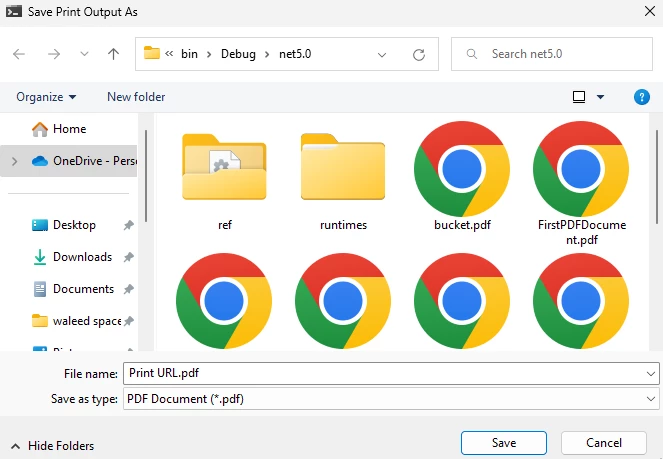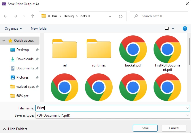 pdf.Print(300, True)以上範例程式碼用於靜默列印 PDF 文件。 如果你想儲存已建立的 PDF 檔案並在 PDF 檢視器中開啟它們,你需要將pdf.Print(300, true)變更為pdf.Print(300, false) 。 這個小小的改動可以讓你在列印前儲存PDF檔案。