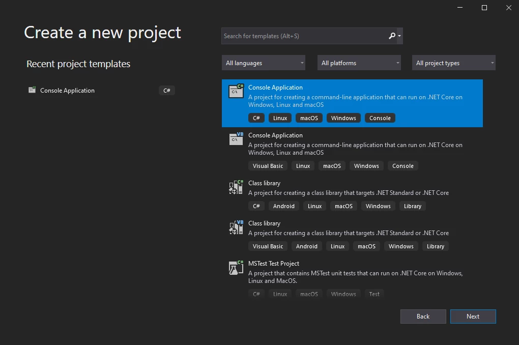 如何在不使用 Adobe 的情況下用 C# 列印 PDF 文件,圖 2:新的 Visual Studio 控制台應用程式 新的 Visual Studio 控制台應用程式