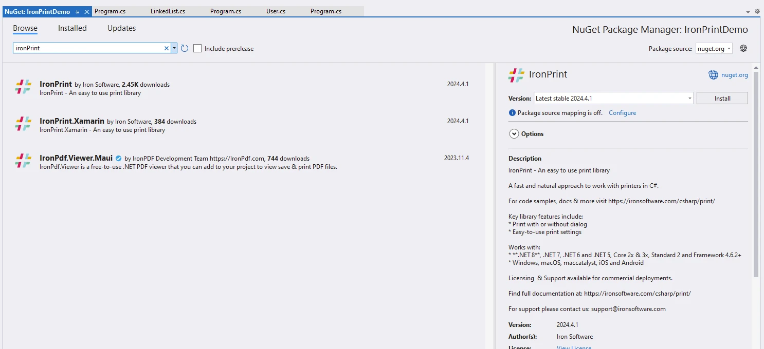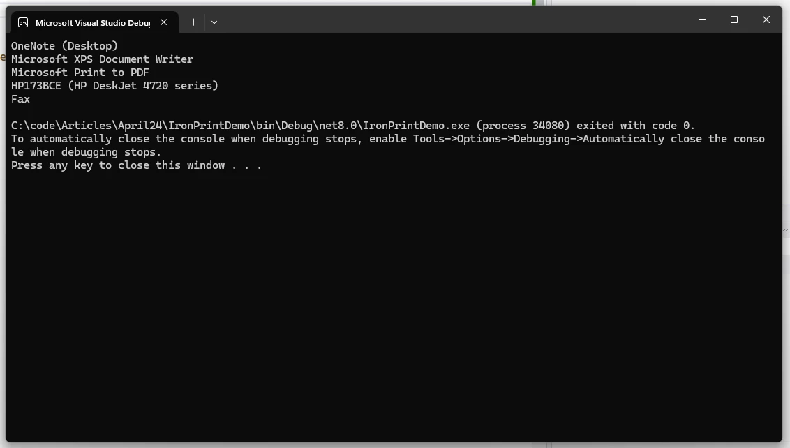 使用 IRONPRINT 如何在 C# 中使用網絡打印機打印 Curtis Chau 更新:6月 22, 2025 下載 IronPrint NuGet 下載 開始免費試用 法學碩士副本 法學碩士副本 將頁面複製為 Markdown 格式,用於 LLMs 在 ChatGPT 中打開 請向 ChatGPT 諮詢此頁面 在雙子座打開 請向 Gemini 詢問此頁面 在雙子座打開 請向 Gemini 詢問此頁面 打開困惑 向 Perplexity 詢問有關此頁面的信息 分享 在 Facebook 上分享 分享到 X(Twitter) 在 LinkedIn 上分享 複製連結 電子郵件文章 在各種軟體應用程式中,透過網路印表機進行程式化列印是一項常見任務。 無論您是開發桌面應用程式、行動應用程式或 Web 服務,將文件直接傳送到網路印表機的功能都可以大大提高軟體的可用性和效率。 在本文中,我們將探討如何使用 C# 和Iron Software的IronPrint在網路印表機上進行列印。 如何在 C# 中使用網路印表機列印 使用IronPrint建立一個用於列印文件的新項目。 將IronPrint安裝到新專案中。 列出可用於列印文件的網路印表機。 使用IronPrint列印 PDF 文件。 使用IronPrint和對話方塊列印 PDF 文件。 進階列印設定。 營造環境 在深入編寫程式碼之前,讓我們先確保環境設定正確。 若要在 C# 中使用網路印表機列印,您需要具備以下條件: 確保從執行 C# 應用程式的電腦可以存取網路印表機。 印表機的網路位址(IP 位址或網路印表機名稱)。 機器上已安裝必要的印表機驅動程式。 如有需要,擁有安裝印表機或驅動程式的管理權限。 IronPrint 在深入探討實作細節之前,讓我們先熟悉一下如何開始使用 IronPrint: 1.安裝:IronPrint 可以透過 NuGet 套件管理器輕鬆安裝。 只需訪問NuGet 頁面並按照安裝說明操作即可。 2.文件:請參閱官方文件以取得快速入門指南和全面的 API 參考。 相容性和支援:IronPrint 提供廣泛的相容性和支持,涵蓋各種環境和專案類型: .NET 版本支援:IronPrint 支援 C#、VB.NET 和 F#,包括 .NET 8、7、6、5 和 Core 3.1+。 *作業系統與環境*:IronPrint 與 Windows (7+)、macOS (10+)、iOS (11+) 和 Android API 21+ (v5"Lollipop") 相容。 專案類型**:無論您是開發行動應用程式(Xamarin、MAUI、Avalonia)、桌面應用程式(WPF、MAUI、Windows Avalonia)還是控制台應用程序,IronPrint 都能滿足您的需求。 現在讓我們透過以下範例了解如何使用 IronPrint 進行列印。 using IronPrint; namespace IronPrintDemo { class Program { static void Main(string[] args) { // Configure printer setting PrintSettings printSettings = new PrintSettings(); printSettings.Dpi = 220; printSettings.NumberOfCopies = 10; printSettings.PaperOrientation = PaperOrientation.Portrait; // Print the document Printer.Print("awesomeIronPrint.pdf", printSettings); } } } using IronPrint; namespace IronPrintDemo { class Program { static void Main(string[] args) { // Configure printer setting PrintSettings printSettings = new PrintSettings(); printSettings.Dpi = 220; printSettings.NumberOfCopies = 10; printSettings.PaperOrientation = PaperOrientation.Portrait; // Print the document Printer.Print("awesomeIronPrint.pdf", printSettings); } } } Imports IronPrint Namespace IronPrintDemo Friend Class Program Shared Sub Main(ByVal args() As String) ' Configure printer setting Dim printSettings As New PrintSettings() printSettings.Dpi = 220 printSettings.NumberOfCopies = 10 printSettings.PaperOrientation = PaperOrientation.Portrait ' Print the document Printer.Print("awesomeIronPrint.pdf", printSettings) End Sub End Class End Namespace $vbLabelText $csharpLabel 系統.列印 C# 中的System.Printing命名空間包含類別和接口,使開發人員能夠以程式設計方式與印表機、列印佇列、列印伺服器和列印作業進行互動。 此命名空間中的一些關鍵類別和介麵包括: PrintQueue :表示連接到系統的印表機或列印設備。 PrintServer :表示網路上的列印伺服器。 PrintSystemJobInfo :提供有關列印作業的信息,例如其狀態和屬性。 PrintTicket :表示列印作業的設置,包括紙張尺寸、方向和列印品質。 System.Printing入門:在深入程式碼之前,讓我們先確保對System.Printing列印工作原理有基本的了解: PrintQueue選擇:您需要確定代表您要用於列印的印表機的PrintQueue佇列物件。 PrintTicket配置:您可以選擇配置PrintTicket對象,以指定列印設置,例如紙張尺寸、方向和份數。 3.文檔列印:最後,將要列印的文檔傳送到選定的PrintQueue 。 使用System.Printing實現文件列印:現在,讓我們透過以下範例來了解使用System.Printing列印文件的過程: 以下是原始碼: using System; using System.IO; using System.Printing; class Program { static void Main(string[] args) { // Specify the path to the document to be printed on the local printer string documentPath = "path/to/your/document.pdf"; // Instantiate a Printer Server object representing the local print server using (PrintServer printServer = new PrintServer()) { // Get the default PrintQueue from the PrintServer default PrintQueue defaultPrintQueue = printServer.DefaultPrintQueue; // Create a PrintTicket object to specify print settings (optional) PrintTicket printTicket = new PrintTicket(); // Configure print settings, e.g., number of copies printTicket.CopyCount = 1; // Print the document to the default PrintQueue with the specified PrintTicket defaultPrintQueue.AddJob("MyPrintJob", documentPath, false, printTicket); } Console.WriteLine("Document sent to print queue."); } } using System; using System.IO; using System.Printing; class Program { static void Main(string[] args) { // Specify the path to the document to be printed on the local printer string documentPath = "path/to/your/document.pdf"; // Instantiate a Printer Server object representing the local print server using (PrintServer prin