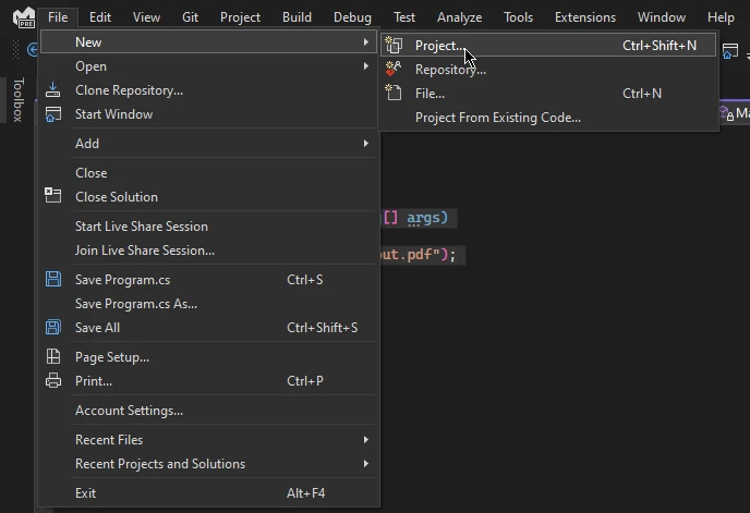 - 若要使用 .NET PDF 印表機庫,請建立一個新專案。