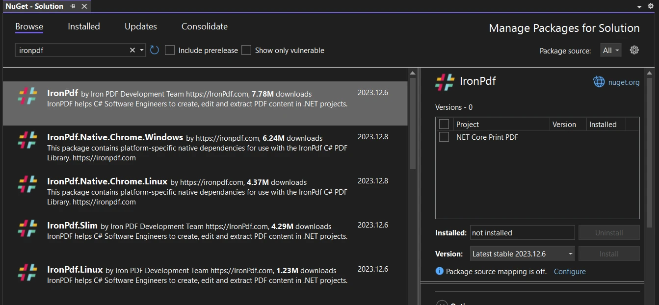 使用 IRONPRINT 如何在 .NET Core 中打印 PDF 文件 Curtis Chau 更新:7月 28, 2025 下載 IronPrint NuGet 下載 開始免費試用 法學碩士副本 法學碩士副本 將頁面複製為 Markdown 格式,用於 LLMs 在 ChatGPT 中打開 請向 ChatGPT 諮詢此頁面 在雙子座打開 請向 Gemini 詢問此頁面 在雙子座打開 請向 Gemini 詢問此頁面 打開困惑 向 Perplexity 詢問有關此頁面的信息 分享 在 Facebook 上分享 分享到 X(Twitter) 在 LinkedIn 上分享 複製連結 電子郵件文章 IronPrint是 Iron Software 全新推出的 .NET 列印庫,相容於包括 Windows、macOS、Android 和 iOS 在內的多種平台。立即開始使用 IronPrint ! .NET Core 是由微軟開發的開源跨平台框架,因其靈活性、高效能和對雲端應用程式的支援而越來越受歡迎。 然而,在處理 PDF 文件時,特別是對於列印 PDF 文件等任務,開發人員需要一個強大且功能豐富的 PDF 庫。 這正是 IronPDF 能夠幫助開發者的地方。 IronPDF是一個專為 .NET 框架(包括 .NET Core 和 ASP.NET Core)設計的綜合資料庫,它簡化了處理 PDF 文件的流程。 它不僅允許創建和操作 PDF 文件,還提供了一種無縫的方式來列印這些文檔,無論是直接列印到印表機,還是將其轉換為適合列印的格式。 在本教學中,我們將深入探討 IronPDF 在 .NET Core 環境中的功能。 從專案設定、建立第一個 PDF 文檔,到配置列印設定、實現進階列印功能,我們將引導您完成每個步驟。本教學課程旨在為您提供在 .NET Core 應用程式中有效處理 PDF 檔案列印所需的知識和工具。 如何在 .NET Core 中列印 PDF 文件 在 Visual Studio 中建立一個 ASP.NET Core Web 項目 使用 NuGet 套件管理器安裝 PDF 庫 在控制器中建立或載入 PDF 文檔 使用 PDF 庫列印已載入的 PDF 文件 設定您的 .NET Core 項目 安裝 IronPDF - .NET PDF 庫 要開始在 .NET 應用程式中使用 PDF,第一步是整合 IronPDF 庫。 IronPDF 是一個功能強大且用途廣泛的程式庫,它使 .NET 開發人員能夠輕鬆建立、編輯以及最重要的程式庫——列印 PDF 文件。 讓我們一起來看看安裝過程: 建立 .NET Core 專案:開啟 Visual Studio 並選擇"建立新專案"。在專案範本選擇視窗中,在"所有平台"下篩選"Web",然後選擇"ASP.NET Core Web 應用程式"。 如何在 .NET Core 中列印 PDF 檔案:圖 1 - 選擇 ASP.NET Core Web 應用程式以建立新項目 安裝 IronPDF :前往"NuGet 套件管理器",搜尋"IronPDF"並將其安裝到您的專案中。 請確保 IronPDF 庫已正確安裝並在專案文件中引用。 你需要在程式碼中包含適當的using語句,例如using IronPdf; 如何在 .NET Core 中列印 PDF 檔案:圖 2 - 使用 NuGet 瀏覽器尋找 IronPDF 庫 在 ASP.NET Core 中建立基本 PDF 文檔 要在 ASP.NET Core Web 應用程式中使用 IronPDF 建立 PDF 文檔,首先需要在其中一個控制器中添加一些程式碼。 這裡有一個簡單的例子供您參考: 設定新控制器 在專案中建立一個新的控制器,該控制器將負責處理 PDF 建立請求。 例如,您可以將其命名為PdfController 。 編寫操作方法 在新控制器中,編寫一個名為CreatePdf操作方法,該方法傳回一個 PDF 檔案作為結果。 using IronPdf; using Microsoft.AspNetCore.Mvc; namespace YourProjectName.Controllers { public class PdfController : Controller { // Action method for creating a PDF document public IActionResult CreatePdf() { // Create a new PDF document from HTML content var renderer = new ChromePdfRenderer(); var pdf = renderer.RenderHtmlAsPdf("<h1>Hello, IronPDF!</h1><p>This is a simple PDF document created in an ASP.NET Core web app.</p>"); // Save the generated PDF to the server's memory var content = pdf.Stream.ToArray(); // Return the PDF to the browser as a downloadable file return File(content, "application/pdf", "MyFirstPdf.pdf"); } } } using IronPdf; using Microsoft.AspNetCore.Mvc; namespace YourProjectName.Controllers { public class PdfController : Controller { // Action method for creating a PDF document public IActionResult CreatePdf() { // Create a new PDF document from HTML content var renderer = new ChromePdfRenderer(); var pdf = renderer.RenderHtmlAsPdf("<h1>Hello, IronPDF!</h1><p>This is a simple PDF document created in an ASP.NET Core web app.</p>"); // Save the generated PDF to the server's memory var content = pdf.Stream.ToArray(); // Return the PDF to the browser as a downloadable file return File(content, "application/pdf", "MyFirstPdf.pdf"); } } } Imports IronPdf Imports Microsoft.AspNetCore.Mvc Namespace YourProjectName.Controllers Public Class PdfController Inherits Controller ' Action method for creating a PDF document Public Function CreatePdf() As IActionResult ' Create a new PDF document from HTML content Dim renderer = New ChromePdfRenderer() Dim pdf = renderer.RenderHtmlAsPdf("<h1>Hello, IronPDF!</h1><p>This is a simple PDF document created in an ASP.NET Core web app.</p>") ' Save the generated PDF to the server's memory Dim content = pdf.Stream.ToArray() ' Return the PDF to the browser as a downloadable file Return File(content, "application/pdf", "MyFirstPdf.pdf") End Function End Class End Namespace $vbLabelText $csharpLabel 運行您的應用程式 啟動應用程序,並導航至PdfController中的CreatePdf操作。 例如,如果您的應用程式在localhost的5000連接埠上執行,請造訪http://localhost:<Your-Port> /Pdf/CreatePdf在您的網頁瀏覽器中http://localhost:<Your-Port> /Pdf/CreatePdf 。 下載PDF文件 存取該網址後,PDF 文件將產生並透過您的網頁瀏覽器下載。 若要查看產生的 PDF 文件,您的電腦上需要安裝 PDF 檢視器。 使用 IronPDF 在 .NET Core 中列印 PDF 文檔 一旦你掌握了在 ASP.NET Core Web 應用程式中建立 PDF 文件的方法,下一步就是實作列印功能。 IronPDF 提供了一種簡單