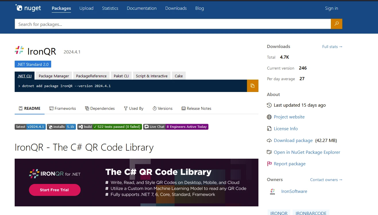 使用 IRONQR 如何在 .NET 6 中使用 QRCoder 比較 IronQR 來產生 QR 碼 Jordi Bardia 更新:6月 22, 2025 下載 IronQR NuGet 下載 開始免費試用 法學碩士副本 法學碩士副本 將頁面複製為 Markdown 格式,用於 LLMs 在 ChatGPT 中打開 請向 ChatGPT 諮詢此頁面 在雙子座打開 請向 Gemini 詢問此頁面 在雙子座打開 請向 Gemini 詢問此頁面 打開困惑 向 Perplexity 詢問有關此頁面的信息 分享 在 Facebook 上分享 分享到 X(Twitter) 在 LinkedIn 上分享 複製連結 電子郵件文章 C# 中的二維碼生成 在 C# 應用程式中建立二維碼是開發人員的常見需求,特別是對於涉及產品識別、票務或輕鬆共享 URL 和其他資料的應用程式。 C# 中有多個可用於產生二維碼的函式庫。 兩個值得關注的選擇是QRCoder和IronQR 。 本文將探討這兩個函式庫,比較它們的功能、易用性、效能以及其他與使用 .NET 6 的開發人員相關的因素。本文將深入比較這些函式庫,考察它們的功能、易用性、許可等,並提供程式碼範例來說明它們的用法。 如何在 .NET 6 中使用 QRCoder 產生二維碼(與 IronQR 相比) 建立一個新的 Visual Studio 專案來產生二維碼 安裝 QRCoder 和 IronQR NuGet 套件以進行比較 使用 QRCoder 和 IronQR 建立二維碼 使用 QRCoder 和 IronQR 進行自訂選項 QR 圖碼 QRCoder是一個以 C# 編寫的開源程式庫,它提供了 QR 碼實現,讓您在任何 .NET 應用程式中產生符合 ISO/IEC 18004 定義的 QR 碼。 這是一個輕量級且易於使用的函式庫,不依賴其他函式庫或網路協定棧。 以下是QRCoder的主要特點和優點: 1. 易用性 C# QRCoder提供了一個簡單直覺的 API,讓開發人員能夠以最少的努力輕鬆產生 QR 碼/QR 碼文字。 它的簡易性使得各種技能等級的開發人員都能快速地將二維碼產生功能整合到他們的專案中。 2. 豐富的自訂選項 QRCoder 的一個突出特點是能夠根據特定要求自訂二維碼。 開發者可以調整糾錯等級、大小、顏色等參數,甚至可以在二維碼中嵌入徽標或圖像。 3. 多種編碼格式 QRCoder 支援多種編碼格式,使開發人員能夠將不同類型的資料編碼到 QR 碼中。 無論是純文字、URL、聯絡資訊或 Wi-Fi 憑證,QRCoder 都能處理各種資料格式。 4. 高品質輸出 C# QRCoder 產生的二維碼品質很高,可確保在不同裝置和掃描條件下具有良好的可讀性和可靠性。 這種可靠性對於以二維碼作為物理互動和數位互動之間橋樑的應用至關重要。 5. 開源和積極開發 C# QRCoder 是一個開源項目,允許開發人員為其開發做出貢獻,並確保持續改進和更新。 這種積極的社區參與促進了創新,並確保圖書館在不斷發展的技術環境中保持相關性。 IronQR IronQR是一個功能強大的 C# 二維碼庫,由Iron Software開發和維護。 它允許 C# 軟體工程師在 .NET 應用程式和網站中檢測、讀取和建立二維碼。 以下是IronQR的一些主要特點: 二維碼生成 IronQR 可實現高度可自訂的二維碼產生。 您可以建立具有各種選項的二維碼,例如調整大小、邊距、邊框和重新著色。 using IronQr; using IronSoftware.Drawing; public class Program { public static void Main() { // Prepare a QR Code object QrCode theQrGen = QrWriter.Write("Awesome IronQR"); // Save QR Code to memory AnyBitmap myQrImage = theQrGen.Save(); // Save QR Code image to disk myQrImage.SaveAs("awesome.png"); } } using IronQr; using IronSoftware.Drawing; public class Program { public static void Main() { // Prepare a QR Code object QrCode theQrGen = QrWriter.Write("Awesome IronQR"); // Save QR Code to memory AnyBitmap myQrImage = theQrGen.Save(); // Save QR Code image to disk myQrImage.SaveAs("awesome.png"); } } Imports IronQr Imports IronSoftware.Drawing Public Class Program Public Shared Sub Main() ' Prepare a QR Code object Dim theQrGen As QrCode = QrWriter.Write("Awesome IronQR") ' Save QR Code to memory Dim myQrImage As AnyBitmap = theQrGen.Save() ' Save QR Code image to disk myQrImage.SaveAs("awesome.png") End Sub End Class $vbLabelText $csharpLabel QR 圖碼讀取 IronQR採用先進的機器學習模型進行二維碼偵測。 此型號可確保準確快速地讀取二維碼。 IronQR 支援讀取各種影像格式的二維碼,包括 JPG、PNG、SVG、bmp 以及 gif 和 tiff 等多頁影像。 using IronQr; using IronSoftware.Drawing; using System.Collections.Generic; public class Program { public static void Main() { // Read QR code var inputBmp = AnyBitmap.FromFile("awesome.png"); // Load the image into QrImageInput QrImageInput imageInput = new QrImageInput(inputBmp); // Create the QR Reader object QrReader reader = new QrReader(); // Read the Input and get all embedded QR Codes IEnumerable<QrResult> results = reader.Read(imageInput); } } using IronQr; using IronSoftware.Drawing; using System.Collections.Generic; public class Program { public static void Main() { // Read QR code var inputBmp = AnyBitmap.FromFile("awesome.png"); // Load the image into QrImageInput QrImageInput imageInput = new QrImageInput(inputBmp); // Create the QR Reader object QrReader reader = new QrReader(); // Read the Input and get all embedded QR Codes IEnumerable<QrResult> results = reader.Read(imageInput); } } Imports IronQr Imports IronSoftware.Drawing Imports System.Collections.Generic Public Class Program Public Shared Sub Main() ' Read QR code Dim inputBmp = AnyBitmap.FromFile("awesome.png") ' Load the image into QrImageInput Dim imageInput As New QrImageInput(inputBmp) ' Create the QR Reader object Dim reader As New QrReader() ' Read the Input and get all embedded QR Codes Dim results As IEnumerable(Of QrResult) = reader.Read(imageInput) End Sub End Class $vbLabelText $csharpLabel 跨平台相容性 桌面:適用於 Windows 桌面應用程式(WPF 和 MAUI)。 行動端:相容於 Xamarin 