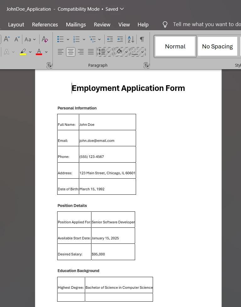 doc.SaveAs("JohnDoe_Application.docx");