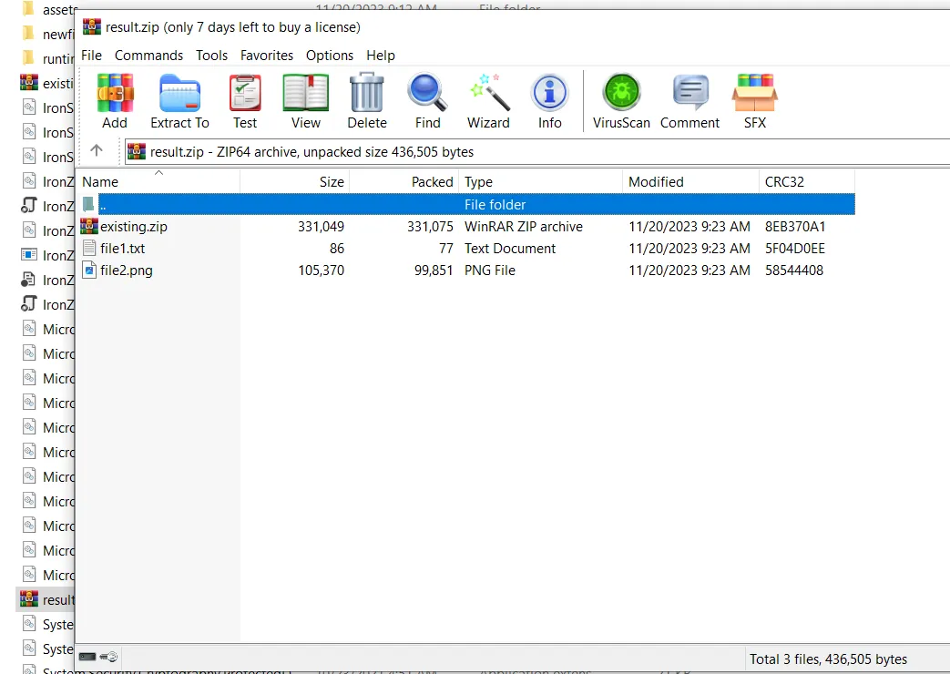 使用 IRONZIP 如何在 C# 中將檔案加入 Zip Curtis Chau 更新:6月 22, 2025 下載 IronZIP NuGet 下載 開始免費試用 法學碩士副本 法學碩士副本 將頁面複製為 Markdown 格式,用於 LLMs 在 ChatGPT 中打開 請向 ChatGPT 諮詢此頁面 在雙子座打開 請向 Gemini 詢問此頁面 在雙子座打開 請向 Gemini 詢問此頁面 打開困惑 向 Perplexity 詢問有關此頁面的信息 分享 在 Facebook 上分享 分享到 X(Twitter) 在 LinkedIn 上分享 複製連結 電子郵件文章 在不斷發展的軟體開發領域,高效地處理 zip 檔案是一個基本面向。 建立 zip 檔案的功能增加了動態維度,因為 C# 可以將檔案新增到 zip 檔案中。 這增強了捆綁資料的多功能性和可壓縮性,從而簡化了儲存和傳輸,展現了 C# 在優化文件管理方面的強大功能。 了解需求:Zip壓縮檔的演變 隨著專案的推進,修改現有 zip 壓縮檔案的必要性變得顯而易見。 此步驟可能源自於各種情況,例如新增檔案、輸出 zip 檔案、更新現有檔案或動態生成內容。 對於開發者來說,在不重新建立的情況下擴充現有的 zip 檔案是一項至關重要的功能。 這個過程不僅節省了寶貴的時間,而且確保了資源的有效利用。 在本文中,我们将探讨如何使用 IronZIP 库的丰富功能,将文件和文件夹添加到现有的 zip 归档中。 IronZIP - AC# ZIP 歸檔庫 IronZIP是一個功能強大的 C# ZIP 歸檔庫,旨在簡化管理 zip 歸檔檔案的複雜性。 它是一款功能強大且用途廣泛的 C# ZIP 歸檔庫,旨在簡化 .NET 應用程式中歸檔檔案的建立、讀取和提取。 IronZIP 以其用戶友好的 API 而聞名,優先考慮準確性、易用性和速度。 IronZIP 的主要特點 跨平台支援: IronZIP 具有卓越的相容性,可在各種不同的平台上無縫運作。 無論您使用的是 Windows、Linux、Mac、iOS、Android、Docker、Azure 或 AWS,IronZIP 都能滿足您的需求。 .NET 相容性: IronZIP 的優點之一是它完全支援各種 .NET 版本,包括 7、6、Core、Standard 和 Framework。 文件格式支援: IronZIP 不僅限於處理 ZIP 壓縮檔; 它將功能擴展到 TAR、GZIP 和 BZIP2 壓縮文件,為各種文件格式提供了多功能的解決方案。 語言和項目類型的多樣性: IronZIP 設計靈活,支援多種程式語言,包括 C#、F# 和 VB.NET。 它可以無縫整合到各種專案類型中,涵蓋 Web、行動、桌面和控制台應用程式。 使用者友善的 API: IronZIP 的 API 注重使用者友善性,確保開發人員能夠快速、直覺地將歸檔管理功能整合到他們的 .NET 專案中。 與常用IDE整合: 開發人員可以在熟悉的環境中利用 IronZIP 的強大功能。 此程式庫與廣泛使用的 IDE(例如 Microsoft Visual Studio 和 JetBrains ReSharper & Rider)整合。 先決條件 使用此程式庫為現有 zip 檔案新增檔案之前,必須具備必要的先決條件。 Visual Studio 安裝: 確保已安裝 Visual Studio,即用於 C# 應用程式的綜合整合開發環境。 如果還沒有,請從官方網站下載。 建立控制台應用程式: 開啟 Visual Studio 並建立一個新專案。 配置項目名稱和位置。 選擇適合的 .NET Framework。 IronZIP 支援最新的 .NET 技術。 ! csharp-add-files-to-zip-tutorial-1 IronZIP軟體包整合: 使用 Visual Studio 工具功能表中的 NuGet 套件管理器控制台,將 IronZIP 庫無縫整合到您的專案中。 在軟體包管理器控制台中執行以下命令: Install-Package IronZip 或者,您可以從解決方案資源管理器開啟"管理解決方案的 NuGet 套件管理器"。 然後,在 NuGet 標籤中,瀏覽並安裝 IronZip。 ! csharp-add-files-to-zip-tutorial-2 將檔案新增至現有 ZIP 檔案的步驟 現在,讓我們深入了解如何使用 IronZip 在 C# 中實現從現有 zip 檔案向 zip 檔案新增檔案。 步驟 1:匯入 IronZip 命名空間 using IronZip; using IronZip; Imports IronZip $vbLabelText $csharpLabel 要访问 IronZIP 提供的功能,请确保在 C# 文件的开头包含 IronZip 命名空间,以创建 zip 文件、读取和提取 zip 文件,并无缝修改它们。 步驟 2:開啟並修改現有 ZIP 壓縮包 在現有 zip 檔案中新增檔案的核心在於使用系統呼叫開啟和修改檔案存檔。 以下程式碼範例演示了這個過程: using (var archive = IronArchive.FromFile("existing.zip", "result.zip", 9)) { // Add new files to the existing archive archive.Add("./newfiles/file1.txt"); archive.Add("./newfiles/file2.jpg"); } using (var archive = IronArchive.FromFile("existing.zip", "result.zip", 9)) { // Add new files to the existing archive archive.Add("./newfiles/file1.txt"); archive.Add("./newfiles/file2.jpg"); } IRON VB CONVERTER ERROR developers@ironsoftware.com $vbLabelText $csharpLabel 程式碼解釋 FromFile方法:此方法用於開啟由"existing.zip"字串檔案名稱指定的現有 zip 檔案。 同時,在指定的目錄中建立一個名為"result.zip"的新存檔,代表結果文件,修改將會套用到該文件中。 壓縮級別: FromFile方法還提供壓縮級別,用於壓縮檔案並建立最小大小的 zip 檔案系統。 第三個參數9表示壓縮級別,即壓縮包內各檔案的壓縮程度。預設值為9 ,壓縮率最高;預設值為0 ,壓縮率最低。 Add方法:此方法便於在現有壓縮包中新增檔案。它會將指定的檔案加入到目前的 zip 檔案中。 步驟 3:執行程序 建置並運行您的應用程式以執行程式碼。 指定的檔案將無縫整合到現有的 zip 壓縮包中。 步驟 4:驗證結果輸出壓縮包 導航至專案目錄並檢查修改後的 zip 檔案("result.zip")。 現在應該既包含原始文件,也包含新添加的文件,充分展現了增強過程的成功。 ! csharp-add-files-to-zip-tutorial-3 IronZIP 的簡潔性和高效性使開發人員能夠輕鬆處理複雜任務。 在實際應用中,當需