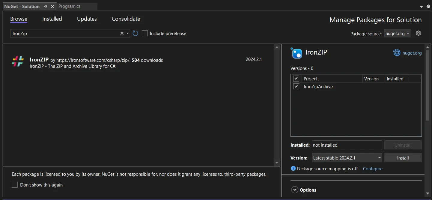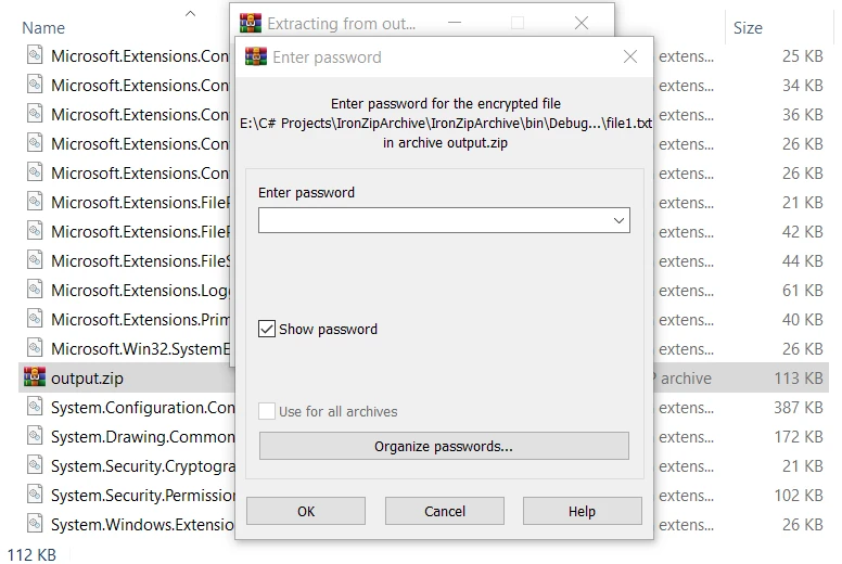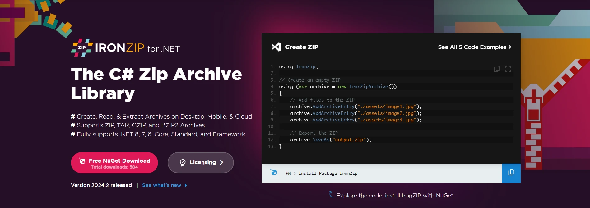 使用 IRONZIP 如何在 C# 中使用密碼壓縮檔案 Curtis Chau 更新:7月 28, 2025 下載 IronZIP NuGet 下載 開始免費試用 法學碩士副本 法學碩士副本 將頁面複製為 Markdown 格式,用於 LLMs 在 ChatGPT 中打開 請向 ChatGPT 諮詢此頁面 在雙子座打開 請向 Gemini 詢問此頁面 在雙子座打開 請向 Gemini 詢問此頁面 打開困惑 向 Perplexity 詢問有關此頁面的信息 分享 在 Facebook 上分享 分享到 X(Twitter) 在 LinkedIn 上分享 複製連結 電子郵件文章 ZIP 檔案廣泛用於壓縮和歸檔數據,使傳輸和儲存大量檔案變得更加容易。 然而,在某些情況下,額外的安全措施至關重要,這就凸顯了密碼保護的 zip 檔案的重要性。 密碼保護確保只有授權人員才能存取和提取 ZIP 存檔的內容,為敏感資料增加額外的安全性。 在本文中,我們將探討如何使用 C# 和 IronZIP 程式庫建立受密碼保護的 ZIP 檔案。 IronZIP 是一個功能強大的 C# ZIP 歸檔庫,它簡化了在 .NET 應用程式中處理 ZIP 檔案的過程。 如何建立帶密碼保護的 C# ZIP 文件 在 Visual Studio 中建立一個 C# 項目 從 NuGet 套件管理器安裝 IronZIP 庫 使用IronZipArchive類別建立一個空的 ZIP 歸檔對象 使用Encrypt方法新增密碼保護 使用Add方法將檔案加入歸檔物件中 使用SaveAs方法匯出 ZIP 檔案 IronZIP庫簡介 如何在 C# 中使用密碼壓縮檔案:圖 1 - IronZIP 網頁 IronZIP是一個領先的 C# ZIP 歸檔庫,專為在 .NET 中建立、讀取和提取歸檔檔案而設計。 它提供了一個用戶友好的 API,使開發人員能夠輕鬆地將歸檔管理功能整合到他們的 .NET 專案中。 IronZIP 支援多種歸檔格式,包括 ZIP、TAR、GZIP 和 BZIP2,為輕鬆處理 zip 檔案提供了全面的解決方案。 IronZIP的詳細功能 相容性 支援 .NET 8、7、6、5、Core、Standard 和 Framework。 相容於 C#、VB.NET 和 F# 語言。 跨平台支援 Windows、Linux、Mac、iOS、Android、Docker、Azure 和 AWS。 與 Microsoft Visual Studio 和 JetBrains ReSharper & Rider 等流行的 IDE 整合。 檔案產生與編輯 支援 ZIP、TAR、GZIP 和 BZIP2 歸檔格式。 建立、匯入和匯出 ZIP 檔案。 使用傳統加密、AES128 或 AES256 加密設定對 ZIP 檔案進行密碼保護。 自訂壓縮,9 個等級。 提供最佳的尺寸縮小效果。 管理歸檔中的文件項目,包括新增、提取和刪除。 安裝 透過 NuGet 套件管理器或套件管理器控制台快速輕鬆地安裝。 與 DigiCert 簽署二進位檔案集成,實現安全的二進位檔案認證。 在 Visual Studio 中建立 C# 控制台專案的步驟 讓我們逐步了解如何在 Visual Studio 中建立一個 C# 控制台項目,並使用 IronZIP 對 zip 檔案進行密碼保護。 1.開啟 Visual Studio。 建立一個新的 C# 控制台應用程式專案。 為你的項目命名並選擇一個地點。 如何在 C# 中使用密碼壓縮檔案:圖 2 - 設定項目名稱和位置 從"附加資訊"中選擇最新版本的 .NET Framework。 IronZIP 支援最新的 8.0 .NET Framework。 點選"建立"生成項目。 安裝 IronZIP 要在您的專案中使用 IronZIP,您需要安裝該程式庫。 您可以使用 NuGet 套件管理器或套件管理器控制台來完成此操作。 使用 NuGet 套件管理員 在解決方案資源管理器中以滑鼠右鍵按一下您的專案。 選擇"管理 NuGet 套件..." 搜尋"IronZip",然後點選"安裝"。 如何在 C# 中使用密碼壓縮檔案:圖 3 - 使用 NuGet 套件管理器安裝 IronZIP 使用軟體套件管理器控制台 開啟軟體包管理器控制台。 執行以下命令: Install-Package IronZip 給 ZIP 檔案設定密碼保護的步驟 IronZIP 安裝完成後,您就可以使用該程式庫對 zip 檔案進行密碼保護了。 導入所需庫 using IronZip; using IronZip.Enum; using IronZip; using IronZip.Enum; Imports IronZip Imports IronZip.Enum $vbLabelText $csharpLabel 這些程式碼從 IronZIP 庫導入必要的命名空間: IronZip包含主要類別和功能,而IronZip.Enum包含庫中使用的枚舉。 主修課程 class Program { static void Main() { // Code execution starts here } } class Program { static void Main() { // Code execution starts here } } Friend Class Program Shared Sub Main() ' Code execution starts here End Sub End Class $vbLabelText $csharpLabel 這是程式的主類,其中包含Main方法,程式碼從這裡開始執行。 建立空的 ZIP 壓縮包 using (var archive = new IronZipArchive(9)) { // Code within the 'using' block } using (var archive = new IronZipArchive(9)) { // Code within the 'using' block } Using archive = New IronZipArchive(9) ' Code within the 'using' block End Using $vbLabelText $csharpLabel using語句確保IronZipArchive物件在使用後被正確釋放。 它創建了一個具有最高壓縮等級(9)的IronZipArchive新實例。 對 ZIP 壓縮檔進行密碼保護 以下一行程式碼可為 ZIP 壓縮檔案新增密碼保護: archive.Encrypt("P@ssw0rd", EncryptionMethods.Traditional); archive.Encrypt("P@ssw0rd", EncryptionMethods.Traditional); IRON VB CONVERTER ERROR developers@ironsoftware.com $vbLabelText $csharpLabel 對archive物件呼叫Encrypt方法來為 ZIP 檔案設定密碼保護。它接受兩個參數:密碼字串("P@ssw0rd")和加密方法( EncryptionMethods.Traditional )。 IronZIP 也提供 AES128 和 AES256 進階密碼保護,更安全,可防止 ZIP 檔案被竄改。 將檔案加入 ZIP 壓縮包 archive.Add("./assets/file1.txt"); archive.Add("./assets/image1.png"); archive.Add("./assets/file1.txt"); archive.Add("./assets/image1.png"); archive.Add("./assets/file1.txt") archive.Add("./assets/image1.png") $vbLabelText $csharpLabel Add方法用於向 ZIP 壓縮包中新增檔案。在本例中,位於"./assets/"目錄下的一個文字檔案和一個圖片檔案( file1.txt和image1.png )被加入到壓縮包中。 需要新增的文件如下: 如何在 C# 中