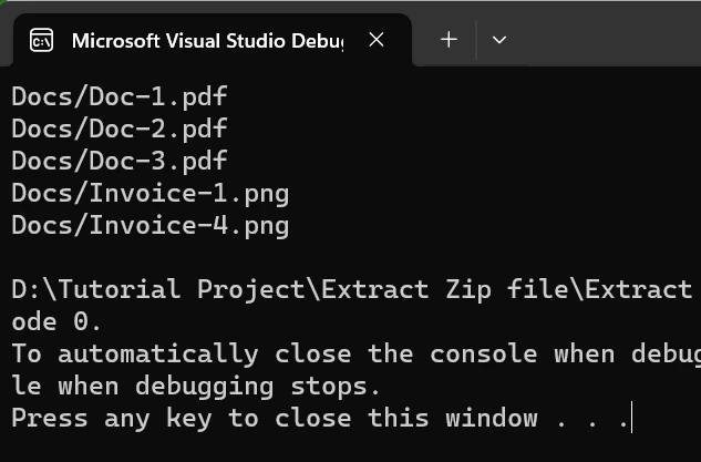 使用 IRONZIP 如何在 VB .NET 中萃取 Zip 檔案 Curtis Chau 更新:7月 28, 2025 下載 IronZIP NuGet 下載 開始免費試用 法學碩士副本 法學碩士副本 將頁面複製為 Markdown 格式,用於 LLMs 在 ChatGPT 中打開 請向 ChatGPT 諮詢此頁面 在雙子座打開 請向 Gemini 詢問此頁面 在雙子座打開 請向 Gemini 詢問此頁面 打開困惑 向 Perplexity 詢問有關此頁面的信息 分享 在 Facebook 上分享 分享到 X(Twitter) 在 LinkedIn 上分享 複製連結 電子郵件文章 Zip 檔案是一種常用的壓縮檔案格式,可以將多個檔案打包成一個單獨的壓縮檔案。處理壓縮檔案(例如 ZIP 壓縮檔案)是軟體開發中的常見任務。 在 VB.NET 中,開發人員經常需要一種可靠且有效率的方法從 ZIP 檔案中提取資料。 IronZIP是一個功能強大的函式庫,可以簡化這個過程。 在本文中,我們將探討如何在 VB.NET 中使用 IronZIP 提取 ZIP 檔案。 如何在VB.NET中提取Zip文件 安裝 IronZIP 函式庫。 使用IronZipArchive.ExtractArchiveToDirectory()方法提取 ZIP 檔案。 使用IronZipArchive.ExtractArchiveToDirectory()方法提取受密碼保護的 ZIP 檔案。 使用GetArchiveEntryNames()方法取得 ZIP 檔案中的所有條目。 IronZIP是什麼? IronZIP ,一套滿足各種開發需求的 .NET 軟體元件。 IronZIP 以其易用性、性能以及對各種壓縮和解壓縮功能的支援而脫穎而出。 IronZIP 的應用案例 IronZIP 的一些應用案例包括: 1.檔案壓縮:您可以使用 IronZIP 來減少檔案大小,從而節省磁碟空間或頻寬。 2.檔案分發:您可以使用 IronZIP 將多個檔案打包到一個壓縮套件中,使共用或傳輸更加容易。 3.文件加密:您可以使用 IronZIP 透過密碼和權限保護您的文件,防止未經授權的存取或修改。 4.文件提取:您可以使用 IronZIP 開啟和讀取來自各種來源(例如本機文件、流或 URL)的 ZIP 文件,並提取內容或元資料。 5.文件管理:您可以使用 IronZIP 來操作 ZIP 文件,例如新增、刪除或合併條目、更改壓縮格式或驗證存檔的完整性。 IronZIP入門指南 要開始在 VB.NET 專案中使用 IronZIP,我們需要安裝 IronZIP 函式庫。 我們可以使用 NuGet 套件管理器控制台或 Visual Studio 的 NuGet 套件管理器輕鬆完成此操作。 安裝 IronZIP NuGet 套件 在 NuGet 套件管理器控制台中輸入以下命令: Install-Package IronZip 按回車鍵執行命令。 NuGet 將下載並安裝 IronZIP 套件及其相依性。 您將在控制台中看到指示安裝進度的輸出。 VB.NET 解壓縮文件 現在,讓我們來探索使用 IronZIP 提取 ZIP 檔案的簡單方法: Imports IronZip Module Program Sub Main(args As String()) ' Set paths for the ZIP file and the extraction directory Dim extractPath As String = "D:\ExtractedFiles" Dim zipPath As String = "D:\Docs.zip" ' Extract the ZIP file to the specified directory IronZipArchive.ExtractArchiveToDirectory(zipPath, extractPath) End Sub End Module Imports IronZip Module Program Sub Main(args As String()) ' Set paths for the ZIP file and the extraction directory Dim extractPath As String = "D:\ExtractedFiles" Dim zipPath As String = "D:\Docs.zip" ' Extract the ZIP file to the specified directory IronZipArchive.ExtractArchiveToDirectory(zipPath, extractPath) End Sub End Module VB .NET 我們使用了IronZipArchive類別的ExtractArchiveToDirectory方法,該方法將 ZIP 檔案中的所有條目提取到指定的目錄中。 它會向該方法傳遞兩個參數:ZIP 檔案的路徑("D:\Docs.zip")和目標目錄的路徑("D:\ExtractedFiles")。 如果沒有指定不同的目錄,則會將檔案解壓縮到預設程式資料夾中。 輸出 如何在 VB.NET 中提取 Zip 檔案:圖 1 - 提取的檔案輸出到預設資料夾 同樣,我們也可以提取Tar 、 GZip和BZip2檔案。 從受密碼保護的 ZIP 壓縮包中提取所有文件 要在 VB.NET 中使用 IronZIP 從受密碼保護的 ZIP 檔案中提取所有文件,我們可以使用以下程式碼片段: Imports IronZip Module Program Sub Main(args As String()) ' Extract password-protected ZIP archive using a password IronZipArchive.ExtractArchiveToDirectory("PasswordProtectedZip.zip", "extractedDocs", "myPassw0rd") End Sub End Module Imports IronZip Module Program Sub Main(args As String()) ' Extract password-protected ZIP archive using a password IronZipArchive.ExtractArchiveToDirectory("PasswordProtectedZip.zip", "extractedDocs", "myPassw0rd") End Sub End Module VB .NET 上述 VB.NET 程式碼使用 IronZIP 程式庫從受密碼保護的 ZIP 壓縮檔案中擷取項目。它呼叫IronZipArchive類別的ExtractArchiveToDirectory方法,該方法將 ZIP 壓縮檔案中的所有條目提取到指定的目錄中。 它會向該方法傳遞三個參數:ZIP 檔案的完整路徑("PasswordProtectedZip.zip")、目標目錄的路徑("extractedDocs")和 ZIP 檔案的密碼("myPassw0rd")。 IronZIP 支援 AES-128、AES-256 和傳統加密演算法。 如果密碼錯誤或 ZIP 檔案未加密,該方法將拋出異常。 提取的文件如下: 如何在 VB.NET 中提取 Zip 檔案:圖 2 - 受密碼保護的提取檔案的輸出 查看 ZIP 檔案的條目 我們可以使用 IronZIP 輕鬆查看壓縮檔案的內容。以下程式碼開啟 ZIP 檔案並在控制台上顯示其內容: Imports IronZip Sub Main(args As String()) ' Specify the ZIP file path Dim startPath As String = "D:\Docs.zip" ' Open the ZIP archive and list entry names Using archive As New IronZipArchive(startPath) Dim names As List(Of String) = archive.GetArchiveEntryNames() ' Print each entry name to the console For Each name As String In names Console.WriteLine(name) Next name End Using End Sub Imports IronZip Sub Main(args As String()) ' Specify the ZIP file path Dim startPath As String = "D:\Docs.zip" ' Open the ZIP archive and list entry names Using archive As New IronZipArchive(startPath) Dim names As List(Of Stri