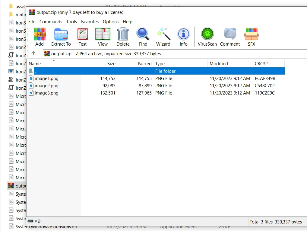 使用 IRONZIP ZipArchive C# (開發人員教程) Curtis Chau 更新:6月 22, 2025 下載 IronZIP NuGet 下載 開始免費試用 法學碩士副本 法學碩士副本 將頁面複製為 Markdown 格式,用於 LLMs 在 ChatGPT 中打開 請向 ChatGPT 諮詢此頁面 在雙子座打開 請向 Gemini 詢問此頁面 在雙子座打開 請向 Gemini 詢問此頁面 打開困惑 向 Perplexity 詢問有關此頁面的信息 分享 在 Facebook 上分享 分享到 X(Twitter) 在 LinkedIn 上分享 複製連結 電子郵件文章 在軟體開發領域,有效率地管理和組織文件至關重要。 實現這一目標的一種方法是使用壓縮文件,通常稱為 zip 文件。 zip 檔案是一種用途廣泛的歸檔格式,擅長壓縮和捆綁多個檔案和目錄。 它使用壓縮演算法來減小檔案大小,將壓縮檔案與其相對路徑一起存儲,支援文字和二進位數據,並且可以在單一檔案或壓縮包中包含多個條目。這使得 ZIP 檔案成為組織、共享和儲存各種類型資料的廣泛使用且高效的解決方案。 這些文件不僅方便資料的儲存和傳輸,還有助於減小現有文件的大小,使其更易於管理。 在本文中,我們將探索創建 C# 中的 zip 存檔以及 IronZIP 作為強大的 C# ZIP 存檔庫如何簡化過程。 IronZIP - C# ZIP 歸檔庫 IronZIP是一款領先的 C# ZIP 歸檔庫,專為在 .NET 工作區中建立、讀取和提取歸檔檔案而設計。 IronZIP 的獨特之處在於其用戶友好的 API,優先考慮準確性、易用性和速度。 無論您是在桌面、行動裝置或雲端應用程式上工作,IronZIP 都能提供強大的解決方案,讓您無縫管理歸檔檔案。 IronZIP 的主要特點 *跨平台支援: IronZIP 與多種平台相容,包括 Windows、Linux、Mac、iOS、Android、Docker、Azure 和 AWS。 .NET 相容性:完全支援 .NET 7、6、Core、Standard 和 Framework。 *檔案格式支援:*支援 ZIP、TAR、GZIP 和 BZIP2 壓縮檔案。 多功能性:**專為 C#、F# 和 VB.NET 設計,支援各種專案類型,包括 Web、行動、桌面和控制台應用程式。 *輕鬆整合:可與 Microsoft Visual Studio 和 JetBrains ReSharper & Rider 等流行的 IDE 無縫整合。 先決條件 在開始實施之前,請確保已具備以下先決條件: Visual Studio:安裝 Visual Studio,這是一個用於建立 C# 應用程式的綜合整合開發環境。 如果尚未安裝,請從其官方網站下載。 IronZIP 套件:使用 NuGet 套件管理器為您的專案安裝 IronZIP 程式庫。 在 Visual Studio 中建立 C# 控制台專案的步驟 開啟 Visual Studio 並建立一個新的 C# 控制台專案。 配置項目名稱和位置。 根據專案需求選擇合適的 .NET 版本。 IronZIP 也支援最新的 .NET Framework。 使用 NuGet 套件管理器安裝 IronZIP 使用 NuGet 套件管理器可以輕鬆將 IronZIP 整合到專案中。 請遵循以下步驟: 右鍵點選解決方案資源管理器,開啟"管理解決方案的 NuGet 套件"。 在 NuGet 瀏覽標籤中,搜尋 IronZIP 並按一下安裝。 或者,從工具選單中選擇 NuGet 套件管理器控制台。 在控制台中執行以下命令來安裝 IronZIP: Install-Package IronZip 現在 IronZIP 已經整合到我們的專案中並且可以使用了,讓我們來看看創建新的ZipArchive檔案系統的步驟。 建立 Zip 歸檔檔案系統的步驟 IronZIP 擁有用戶友好的 API 和簡潔的語法,使得創建 zip 檔案變得異常簡單,開發人員只需幾行程式碼即可有效地壓縮和組織文件。 請依照下列步驟建立 C# zip 歸檔檔案系統: 步驟 1:導入命名空間 在 C# 檔案中匯入 IronZIP 命名空間: using IronZip; using IronZip; Imports IronZip $vbLabelText $csharpLabel 步驟 2:建立一個空的ZipArchive並將檔案加入到該壓縮檔案中 在 C# 中使用 IronZIP 時,首先需要實例化一個IronArchive對象,該對象代表 ZIP 壓縮包。這個物件充當容器,用於存放要包含在壓縮包中的檔案。初始狀態下,壓縮包為空,需逐一新增檔案。 建立IronArchive物件後,您可以使用Add方法指定要包含在 zip 壓縮包中的檔案。此方法接受檔案路徑作為參數,允許您將多個檔案作為新條目新增至壓縮包。 IronZIP 的優點在於它的簡潔性和高效性。 只需幾行程式碼,即可建立 zip 壓縮包,並將所需的檔案填入其中。 現在,讓我們來看看下面範例中實作此任務的程式碼: using System; using IronZip; class Program { public static void Main(string[] args) { // Create an empty ZIP archive using (var archive = new IronArchive("output.zip")) { // Add files to the ZIP archive.Add("./assets/image1.jpg"); archive.Add("./assets/image2.jpg"); archive.Add("./assets/image3.jpg"); } // Notify that the zip file has been created successfully Console.WriteLine("Zip file generated successfully!"); } } using System; using IronZip; class Program { public static void Main(string[] args) { // Create an empty ZIP archive using (var archive = new IronArchive("output.zip")) { // Add files to the ZIP archive.Add("./assets/image1.jpg"); archive.Add("./assets/image2.jpg"); archive.Add("./assets/image3.jpg"); } // Notify that the zip file has been created successfully Console.WriteLine("Zip file generated successfully!"); } } Imports System Imports IronZip Friend Class Program Public Shared Sub Main(ByVal args() As String) ' Create an empty ZIP archive Using archive = New IronArchive("output.zip") ' Add files to the ZIP archive.Add("./assets/image1.jpg") archive.Add("./assets/image2.jpg") archive.Add("./assets/image3.jpg") End Using ' Notify that the zip file has been created successfully Console.WriteLine("Zip file generated successfully!") End Sub End Class $vbLabelText $csharpLabel 以上範例展示了一段程式碼片段: using語句確保IronArchive物件得到正確管理,並在程式碼區塊退出時釋放資源。 這對於處理文件資源尤其重要。 IronArchive建構