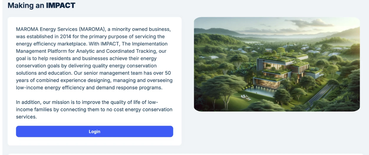 IMPACT(用於分析和協調追蹤的實施管理平台)是一個強大的數位解決方案,旨在支援能源效率計畫實施者。 它提供可自訂的數位表單,具有加密功能、進階存取控制以及多種檢視和報告選項。 該平台旨在建立一個全面的線上申請資料庫,以幫助高效、有效地篩選符合節能改造條件的房主。