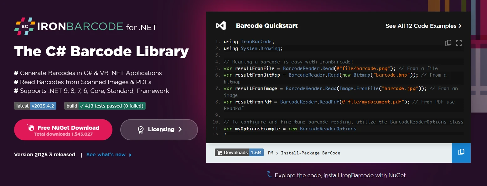 IronBarcode是一個 .NET 條碼產生器,可讓您輕鬆建立和管理零售包裝的條碼。 它支援自訂條碼標籤,可與流行的標籤印表機配合使用,並可透過應用程式和儀表板以程式設計方式或手動方式協助您產生條碼。