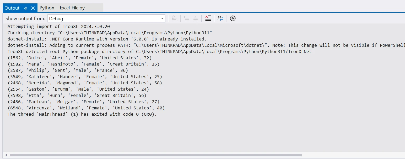 使用 IRONXL FOR PYTHON 如何使用 python 將 Excel 檔案匯入資料庫表格 Curtis Chau 更新:6月 22, 2025 下載 IronXL pip 下載 開始免費試用 法學碩士副本 法學碩士副本 將頁面複製為 Markdown 格式,用於 LLMs 在 ChatGPT 中打開 請向 ChatGPT 諮詢此頁面 在雙子座打開 請向 Gemini 詢問此頁面 在雙子座打開 請向 Gemini 詢問此頁面 打開困惑 向 Perplexity 詢問有關此頁面的信息 分享 在 Facebook 上分享 分享到 X(Twitter) 在 LinkedIn 上分享 複製連結 電子郵件文章 在當今數據驅動的世界中,高效的數據處理對於任何組織或個人來說都是至關重要的任務。 Python擁有豐富的函式庫生態系統,提供了強大的資料操作和管理工具,例如pandas函式庫。 一個常見的場景是需要從Excel電子表格中提取或匯入數據,並將數據儲存或插入資料庫中,以便進行進一步分析或與其他系統整合。 在本教程中,我們將探討如何建立一個 Python 腳本來自動執行此過程,使您能夠無縫地從 Excel 表格檔案中讀取資料並將其插入資料庫。 學完本教學後,您將能夠有效率地處理資料遷移任務。 讓我們開始吧 如何使用 Python 將 Excel 檔案匯入資料庫表 先安裝 IronXL 庫。 使用 IronXL 將 Excel 檔案載入到記憶體中。 載入您要使用的特定電子表格。 選擇要匯入的精確資料範圍。 使用 Python 與 SQLite 或 MySQL 等資料庫建立連線。 在 SQLite 資料庫中建立一個新表,用於容納匯入的資料。 將 Excel 檔案中選定的行插入到新建立的 SQLite 表中。 從建立的 SQLite 表中檢索和選擇數據,以便進行進一步的分析或處理。 在本教程中,我們將使用IronXL ,這是一個以高效處理 Excel 檔案而聞名的 Python 庫。 透過將 IronXL 整合到我們的腳本中,我們確保從 Excel 電子表格中無縫提取數據,從而能夠順利地將數據插入資料庫以進行進一步的分析和處理。 IronXL是什麼? IronXL 是由 Iron Software 開發的 Python 函式庫,它提供了強大的功能,可以直接在 Python 應用程式中讀取、產生和編輯 Excel 檔案。 值得注意的是,IronXL 的突出之處在於它無需安裝 Microsoft Excel,從而簡化了在不同環境中的部署。 透過 IronXL,開發人員可受益於: 跨平台支援:可在 Windows、macOS、Linux、Docker、Azure 和 AWS 平台上無縫運行,確保適應各種不同的開發環境。 資料匯入和匯出:輕鬆處理從 XLS、XLSX、CSV 和 TSV 檔案匯入的數據,並可靈活地將工作表匯出為這些格式,甚至匯出為 JSON 格式,以增強互通性。 加密功能:利用 IronXL 的加密功能確保資料安全,允許使用密碼保護 XLSX、XLSM 和 XLTX 檔案。 公式和重新計算:輕鬆使用 Excel公式,每次編輯工作表時都會自動重新計算,從而確保資料處理的準確性和可靠性。 儲存格樣式:透過調整字體樣式、大小、背景圖案、邊框和對齊方式來自訂單一儲存格的外觀,從而增強 Excel 文件的視覺效果。 支援多種文件格式: IronXL 支援多種格式,包括 XLS、XLSX、XLST、XLSM、CSV 和 TSV,讓開發人員能夠輕鬆且有效率地處理各種場景下的資料。 現在,我們先來安裝 IronXL。 步驟 1:安裝 IronXL 庫 第一步是安裝 IronXL 庫。 在命令提示字元中執行以下命令來安裝 IronXL。 pip install IronXL pip install IronXL SHELL 步驟 2:載入 Excel 工作簿 下一步是載入Excel檔案。本教學將使用以下Excel檔案。 如何使用 Python 將 Excel 檔案匯入資料庫表:圖 1 - Excel 檔案輸入範例 以下程式碼會將記憶體中已有的 Excel 檔案載入到記憶體中。 from ironxl import * # Supported for XLSX, XLS, XLSM, XLTX, CSV, and TSV # Assign a license key (retrieved from IronXL website) License.LicenseKey = "IRONSUITE.ABC.XYZ.COM.15796-DEPLOYMENT.TRIAL-5X63V4.TRIAL.EXPIRES.27.MAY.2024" # Load the Excel workbook into memory workbook = WorkBook.Load("sample_excel.xlsx") from ironxl import * # Supported for XLSX, XLS, XLSM, XLTX, CSV, and TSV # Assign a license key (retrieved from IronXL website) License.LicenseKey = "IRONSUITE.ABC.XYZ.COM.15796-DEPLOYMENT.TRIAL-5X63V4.TRIAL.EXPIRES.27.MAY.2024" # Load the Excel workbook into memory workbook = WorkBook.Load("sample_excel.xlsx") PYTHON 上面的 Python 程式碼片段示範如何使用 IronXL 程式庫載入名為"sample_excel.xlsx"的 Excel 工作簿。 首先,從 IronXL 導入必要的 Python 模組。 然後,系統會指派一個許可證金鑰來驗證庫的使用情況。 您可以從IronXL 網站取得免費許可證金鑰。 最後,採用Load方法開啟並載入指定的 Excel 工作簿到記憶體中。 這樣就可以對它的內容進行後續的程式設計操作,例如讀取資料、修改儲存格值或應用程式格式。 步驟 3:選擇工作表 若要使用 IronXL 選擇 Excel 工作簿中的工作表,您可以指定工作表索引或名稱。 # Select the first worksheet in the loaded Excel workbook worksheet = workbook.WorkSheets[0] # Select the first worksheet in the loaded Excel workbook worksheet = workbook.WorkSheets[0] PYTHON 此行選擇已載入的 Excel 工作簿中的第一個工作表,並將其指派給變數worksheet ,從而允許對工作簿中的該特定工作表執行後續操作。 這將把 Excel 工作表中的資料載入到工作表變數中。 步驟 4:開啟資料庫連接 在本教程中,我們將使用 SQLite 資料庫而不是 MySQL 資料庫伺服器。 要啟動資料庫操作,我們首先要建立與資料庫的連線。 import sqlite3 # Connect to SQLite database (or create it if it doesn't exist) conn = sqlite3.connect('data.db') import sqlite3 # Connect to SQLite database (or create it if it doesn't exist) conn = sqlite3.connect('data.db') PYTHON 上述程式碼建立了與名為"data.db"的 SQLite 資料庫的連線。 如果指定的資料庫