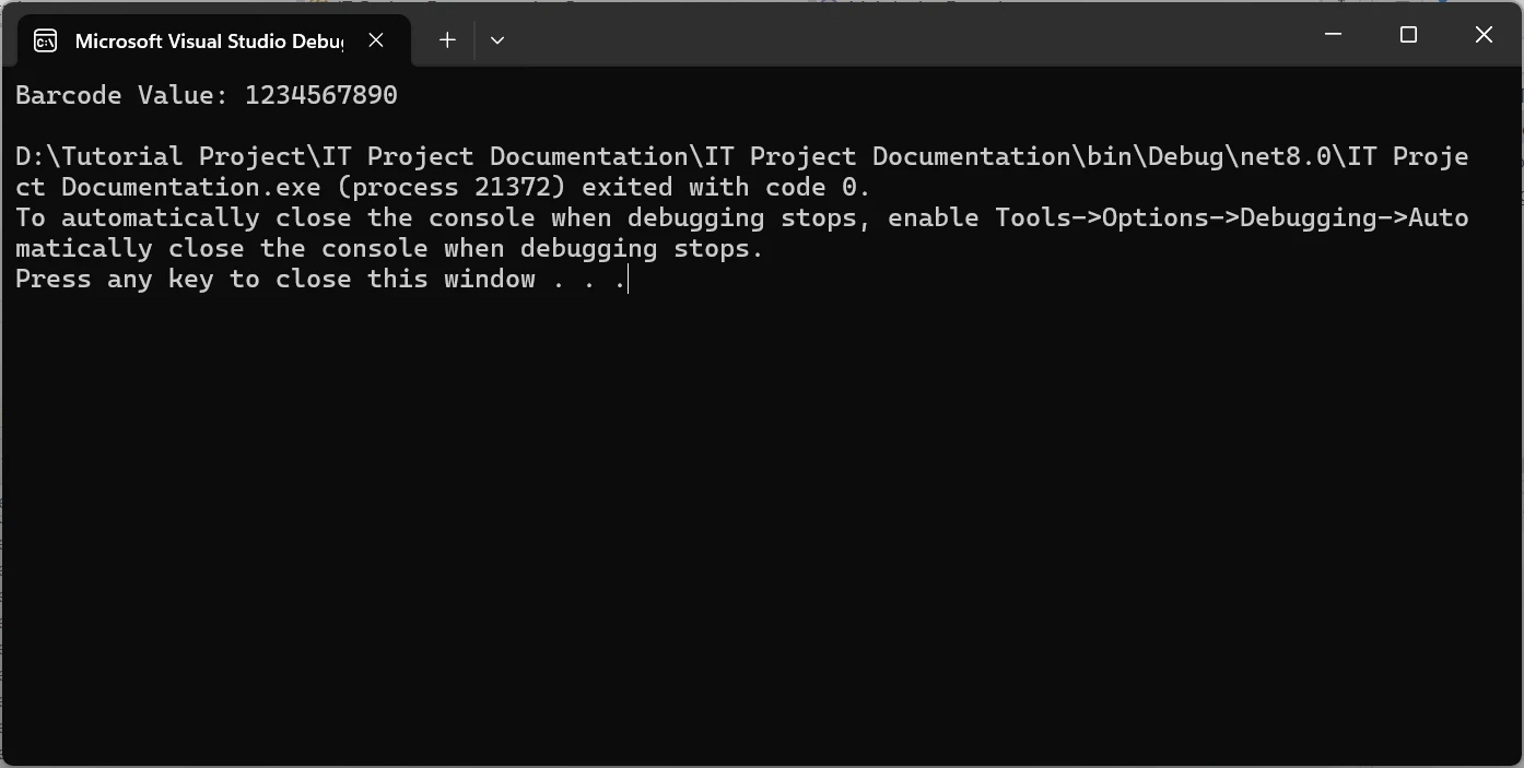 Console.WriteLine($"Barcode Value: {barcodeValue.ToString()}");