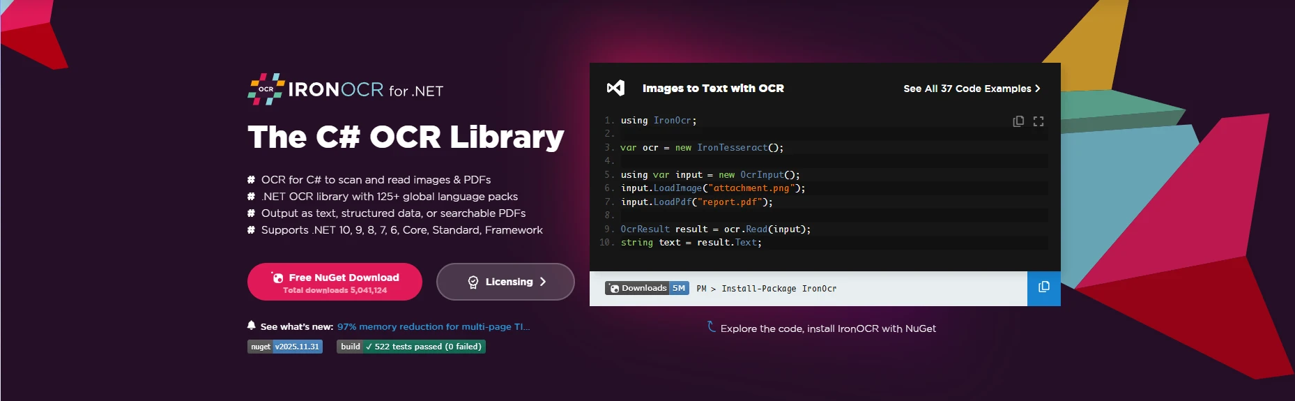 var ocr = new IronTesseract();