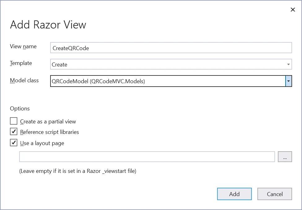 USING IRONBARCODE How to Generate QR Codes in ASP.NET MVC Jordi Bardia 已更新:六月 22, 2025 下载 IronBarcode NuGet 下载 DLL 下载 免费试用 法学硕士副本 法学硕士副本 将页面复制为 Markdown 格式,用于 LLMs 在 ChatGPT 中打开 向 ChatGPT 咨询此页面 在双子座打开 向 Gemini 询问此页面 在双子座打开 向 Gemini 询问此页面 打开困惑 向 Perplexity 询问有关此页面的信息 分享 在 Facebook 上分享 分享到 X(Twitter) 在 LinkedIn 上分享 复制链接 电子邮件文章 在当今快节奏的数字化环境中,二维码的生成已成为高效信息共享的重要工具。 这些紧凑的二维条形码能够存储各种数据,包括网址、文本、联系信息、产品详情等等,在现代通信中发挥着关键作用。 将二维码生成功能集成到您的 ASP.NET MVC 应用程序中,您可以通过无缝生成二维码来增强用户体验,简化交互,并促进轻松的信息交换,从而赋能用户。 如果您正在开发 ASP.NET MVC 应用程序并希望集成二维码生成功能, IronBarcode是一个优秀的库,可以简化该过程。 本文将探讨如何使用 Iron Barcode 库在 ASP.NET MVC 中生成二维码。 IronBarcode IronBarcode 是一个功能强大且特性丰富的 .NET 应用程序二维码生成和识别库。 借助 IronBarcode,开发人员可以轻松地将条形码和二维码功能集成到他们的 ASP.NET MVC 项目中,包括生成二维码的功能。 该库提供了一套全面的工具和 API,简化了创建和自定义二维码的过程,使开发人员能够根据自己的特定需求进行定制。 IronBarcode 为各种条形码类型(包括二维码)提供广泛的支持,使其成为需要二维码生成功能的项目的理想选择。 它为开发者提供了灵活性,可以指定要编码的数据,控制生成的二维码的大小和分辨率,甚至添加颜色和徽标等视觉样式元素。 该库可确保生成高质量的条形码,并精确控制二维码外观的各个方面。 除了生成二维码之外,IronBarcode 还包含强大的条形码读取和解码功能。 它支持扫描和提取二维码中的数据,使应用程序能够处理其中编码的信息。 此功能适用于需要条形码扫描和数据提取的场景,例如库存管理、票务系统和移动应用程序。 现在,让我们创建一个项目,在 ASP.NET Core MVC Web 应用程序中生成二维码。 项目设置 在深入探讨实现细节之前,让我们确保您的 ASP.NET MVC 项目已设置完毕并准备就绪。 无论您是开始一个新项目还是处理一个现有项目,以下步骤将指导您完成将 Iron Barcode 库集成到您的应用程序中的过程。 就我而言,我创建了一个新项目。 创建新项目的步骤如下: 打开 Microsoft Visual Studio 2022。 在起始页上,点击"创建新项目",或者从顶部菜单中选择"文件">"新建">"项目"。 在"创建新项目"窗口中,您将看到不同的项目模板可供选择。 选择项目模板"ASP.NET Core Web 应用程序(模型-视图-控制器)",然后单击"下一步"。 输入项目名称和地点。 选择电脑上合适的位置保存项目文件。 选择所需的框架版本。 Visual Studio 通常会建议使用最新的稳定版本,但如果需要,您可以选择其他版本。 我选择了.NET 7。 根据您的需求,自定义任何其他项目设置,例如身份验证选项或项目文件夹。 点击"创建"按钮创建项目。 Visual Studio 随后将生成项目文件并打开解决方案资源管理器,您可以在其中查看项目结构并开始编写代码。 如何在 ASP.NET MVC 中生成二维码:图 1 现在,我们需要将 Iron 条码库安装到我们的应用程序中。 安装 Iron Barcode 首先,在 Visual Studio 中打开程序包管理器控制台,然后运行以下命令: Install-Package IronBarCode 此命令将安装 Iron Barcode 库,并将必要的引用添加到您的项目中。 如何在 ASP.NET MVC 中生成二维码:图 2 现在,让我们编写一些代码来创建二维码。 创建 QRCodeModel 在 Models 文件夹内创建一个模型类,并写入以下代码: using System.ComponentModel.DataAnnotations; public class QRCodeModel { [Display(Name = "Enter QR Code Text")] public string QRCodeText { get; set; } } using System.ComponentModel.DataAnnotations; public class QRCodeModel { [Display(Name = "Enter QR Code Text")] public string QRCodeText { get; set; } } Imports System.ComponentModel.DataAnnotations Public Class QRCodeModel <Display(Name := "Enter QR Code Text")> Public Property QRCodeText() As String End Class $vbLabelText $csharpLabel 创建二维码控制器 在您的 ASP.NET MVC 项目中,创建一个名为QrCodeController新控制器。 为此,请右键单击项目结构中的Controllers文件夹,选择"添加",然后选择"控制器"。从可用选项中,选择"MVC 控制器 - 空"。 在QrCodeController中编写以下代码: using Microsoft.AspNetCore.Mvc; using IronBarCode; using System.IO; public class QrCodeController : Controller { private readonly IWebHostEnvironment _environment; public QrCodeController(IWebHostEnvironment environment) { _environment = environment; } public IActionResult CreateQRCode() { return View(); } [HttpPost] public IActionResult CreateQRCode(QRCodeModel generateQRCode) { try { // Creating QR Code GeneratedBarcode barcode = QRCodeWriter.CreateQrCode(generateQRCode.QRCodeText); string path = Path.Combine(_environment.WebRootPath, "GeneratedQRCode"); if (!Directory.Exists(path)) { Directory.CreateDirectory(path); } string filePath = Path.Combine(path, "qrcode.png"); barcode.SaveAsPng(filePath); string fileName = Path.GetFileName(filePath); string imageUrl = $"{this.Request.Scheme}://{this.Request.Host}{this.Request.PathBase}/GeneratedQRCode/{fileName}"; ViewBag.QrCodeUri = imageUrl; } catch (Exception ex) { // Handle exceptions // Log the exception details here for troubleshooting and debugging. throw; } return View(); } } usi