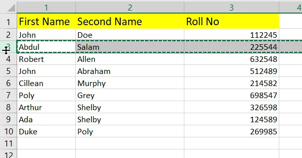 这种方法可以很方便地在 Excel 中移动整行或整列。 您也可以使用相同的方法移动列。 只需选择列并执行相同的操作即可。 此方法保留与移动行关联的所有单元格格式、公式和数据验证规则。