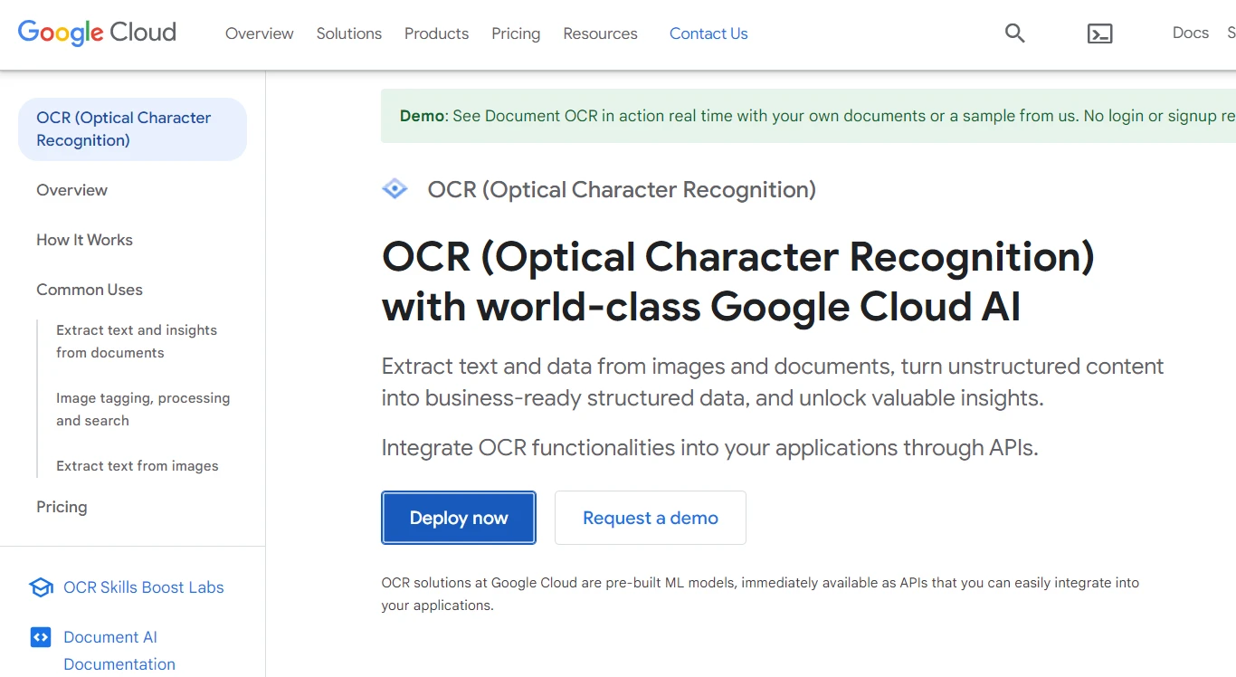 OCR 工具 OCR Foto(初学者教程) Kannapat Udonpant 已更新:七月 28, 2025 下载 IronOCR NuGet 下载 DLL 下载 Windows 安装程序 免费试用 法学硕士副本 法学硕士副本 将页面复制为 Markdown 格式,用于 LLMs 在 ChatGPT 中打开 向 ChatGPT 咨询此页面 在双子座打开 向 Gemini 询问此页面 在双子座打开 向 Gemini 询问此页面 打开困惑 向 Perplexity 询问有关此页面的信息 分享 在 Facebook 上分享 分享到 X(Twitter) 在 LinkedIn 上分享 复制链接 电子邮件文章 光学字符识别(OCR)技术彻底改变了我们在数字世界中与文本交互的方式。 OCR 照片工具能够将图像转换为文本,从而更容易将打印的笔记数字化。 在本文中,我们将探索四个在线 OCR 工具——包括免费和付费,并以 IronOCR 为例进行介绍,展示如何在 C# 中程序化地实施 OCR。 1. Google Vision API Google Vision API提供强大的 OCR 解决方案,用于创建 Google 提供的图像转文本转换器。 它支持图像和PDF文本提取,并能识别多种语言的文本。 OCR 照片(入门教程):图 1 优点 高精度 语言支持 与其他 Google Cloud 服务集成。 缺点 需要 API 密钥 *超过一定使用量后并非完全免费。 步骤 1:获取 API 密钥 访问Google Cloud 控制台。 创建新项目或选择现有项目。 启用 Cloud Vision API 并生成 API 密钥。 步骤 2:发出 API 请求 使用 cURL 等工具或您选择的编程语言发出 HTTP POST 请求。 在请求负载中包含图像文件或 URL。 curl -s -X POST -H "Content-Type: application/json" \ -H "Authorization: Bearer YOUR_API_KEY" \ --data-binary @path/to/your/image.jpg \ "https://vision.googleapis.com/v1/images:annotate?key=YOUR_API_KEY" curl -s -X POST -H "Content-Type: application/json" \ -H "Authorization: Bearer YOUR_API_KEY" \ --data-binary @path/to/your/image.jpg \ "https://vision.googleapis.com/v1/images:annotate?key=YOUR_API_KEY" SHELL 步骤 3:解析结果 从 API 响应中提取识别出的文本。 { "responses": [ { "textAnnotations": [ { "description": "Hello World!", "boundingPoly": { /* bounding box coordinates */ } } ] } ] } 2. Tesseract OCR Tesseract是谷歌开发的开源 OCR 引擎。 它支持 100 多种语言,并因其准确性和灵活性而被广泛使用。 它可以帮助转换多种文件格式的图像,甚至可以将扫描的图像转换为可编辑的文本。 OCR 照片(入门教程):图 2 优点 开源 高精度 社区支持 缺点 可能需要额外的集成工具 可能需要对图像进行预处理以获得最佳效果。 步骤 1:安装 Tesseract 从官方 GitHub 存储库下载并安装 Tesseract OCR。 将 Tesseract 文件夹添加到 PATH 环境变量中,以便从终端访问它。 步骤 2:对图像运行 OCR 打开终端并导航到包含图像的文件夹。 执行以下命令: tesseract path/to/your/image.jpg output.txt tesseract path/to/your/image.jpg output.txt SHELL 步骤 3:查看结果 打开生成的文本文件( output.txt )以查看提取的文本。 3. ABBYY FineReader Online ABBYY FineReader Online 是一款基于云的 OCR 服务,允许用户将扫描的文档和图像转换为可编辑的格式。 这款在线工具提供了一个免费的基于 OCR 的在线文本转换器,可以轻松地从图像中提取文本。 OCR 照片(入门教程):图 3 优点 用户友好的图像OCR工具 支持多种输入格式 保留文档格式 缺点 免费使用次数有限 需要互联网连接 第一步:访问 ABBYY FineReader Online 访问ABBYY FineReader Online网站。 下载适用于 Windows 或 Mac 的免费试用版。 安装软件并按照给定的步骤操作。 步骤二:上传图片 点击"选择文件"按钮并上传您的图片。 步骤 3:处理图像 等待图像处理完成。 该工具将自动提取文本。 步骤 4:编辑文本 保存提取的文本或使用编辑器进行必要的更正。 保存为 Word、Excel 和文本格式。 4. 在线OCR 在线 OCR是一种基于网络的 OCR 服务,支持多种语言,可进行在线图像转文本转换。 用户可以直接从设备上传图片,也可以提供图片链接。 优点 简洁的用户界面 支持多种输入格式 免费使用,但有使用限制 缺点 免费功能有限 取决于网络连接 步骤 1:访问在线 OCR 访问在线OCR网站。 步骤二:上传图片 点击"选择文件"按钮并上传您的图片。 OCR 照片(入门教程):图 4 步骤 3:选择语言和输出格式 选择图像中文本的语言和输出格式。 OCR 照片(入门教程):图 5 步骤 4:开始 OCR 点击"转换"按钮开始OCR过程。 步骤 5:下载文本 提取过程完成后,从提供的链接下载提取的文本。 OCR 照片(入门教程):图 6 C# 中的 IronOCR 简介 现在,让我们深入了解 IronOCR,这是一个功能强大的 C# OCR 库,它为开发人员提供了无缝实现 OCR 功能的工具。 IronOCR 是由 Iron Software 团队开发的领先的 C# OCR 库。 IronOCR是一款专为 C# 开发人员设计的强大的光学字符识别 (OCR) 库,它提供了一套强大的功能,可以从图像中准确、无缝地提取文本。 IronOCR 以其可靠性和效率而闻名,在寻求从图像和文档中提取文本的综合解决方案的 C# 开发人员中广受欢迎。 IronOCR 注重准确性和多功能性,已成为从文档管理系统到数据提取应用程序等各种项目的首选。 IronOCR 利用先进的 OCR 算法,能够准确地从各种图像格式(包括 JPEG、PNG 和 TIFF)中解码文本。 它具有多功能性,支持多种语言,使其成为满足不同语言需求的应用程序的宝贵工具。 该库与流行的 .NET 框架无缝集成,简化了 C# 应用程序中 OCR 功能的实现。 无论您是处理扫描文档还是图像,IronOCR 的全面功能都能帮助开发人员轻松地将 OCR 功能集成到他们的项目中。 IronOCR功能详解 1.高级 OCR 算法: IronOCR 采用复杂的 OCR 算法,超越了基本的字符识别,即使在复杂情