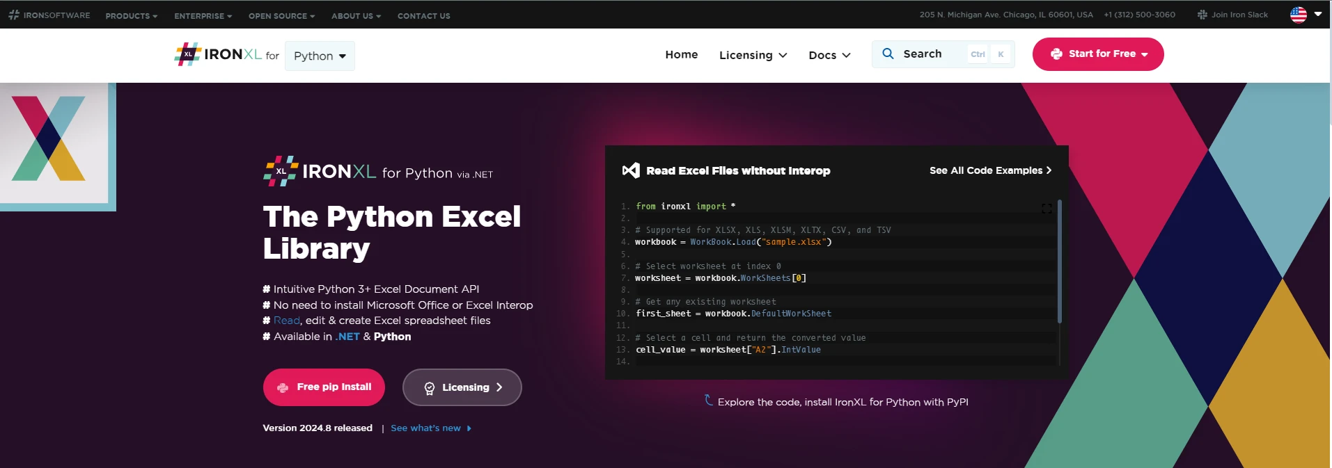 使用 IRONXL FOR PYTHON 如何在 Python 中创建一个 Excel 文件 Curtis Chau 已更新:六月 22, 2025 下载 IronXL pip 下载 免费试用 法学硕士副本 法学硕士副本 将页面复制为 Markdown 格式,用于 LLMs 在 ChatGPT 中打开 向 ChatGPT 咨询此页面 在双子座打开 向 Gemini 询问此页面 在双子座打开 向 Gemini 询问此页面 打开困惑 向 Perplexity 询问有关此页面的信息 分享 在 Facebook 上分享 分享到 X(Twitter) 在 LinkedIn 上分享 复制链接 电子邮件文章 这是使用 Python 创建 Excel 工作表文件,实现数据管理和报告任务自动化的最强大、最高效的方法之一。 IronXL 等库允许用户以编程方式处理Excel ; 开发人员可以创建 XLS 文件,并修改或操作 XLSX 文件电子表格,从而执行数据输入任务,甚至进行更复杂的格式设置、公式计算和图表创建。 无论是自动生成报告、处理大量数据,还是将 Excel 的功能引入应用程序,使用 Python 都能提供灵活的工具,使开发人员能够轻松高效地创建和使用 Excel 表格文件。 IronXL是什么? IronXL库功能强大且灵活,使用户能够轻松地在 Python 代码之上处理 Excel 文件。 该库不需要像 Microsoft Excel 这样的第三方软件来创建、编辑或管理电子表格。 换句话说,这是一个非常不同的库。 它能够读取和写入 .XLSX 和 .XLS 文件格式,具有公式、样式、数据验证和创建图表等功能。 如何在 Python 中创建 Excel 文件:图 1 - IronXL 其直观的 API 使开发人员能够轻松创建自定义 Excel 报表、自动输入数据,并将 Excel 工作流程与大型应用程序连接起来。 此外,它在处理大数据和复杂电子表格方面也提供了更佳的性能提升,对于任何有兴趣在其 Python 项目中高效管理 Excel 文件的企业或开发人员来说都非常强大。 此外,它的界面相当友好,而且具有跨平台兼容性,使其成为任何寻求现代化 Excel 自动化方法的人的首选。 如何在 Python 中创建 Excel 文件 安装 IronXL 库。 从 IronXL 库导入所需的类。 创建一个新的 Excel 工作簿。 向工作簿中添加工作表。 将数据插入指定单元格。 将工作簿另存为 Excel 文件。 IronXL的特点 IronXL 是一个功能强大的库,可以在 Python 中处理 Excel 文件。 以下是IronXL的一些主要功能详细介绍: 读取和写入 Excel 文件 *支持多种格式*:IronXL 可以创建 Excel 文件,也可以读取现有的 Excel 文件。它支持 XLS 和 XLSX 两种文件格式,从而可以使用不同版本的 Excel 文件。 跨平台兼容性:**它允许用户在 Windows、Linux 和 macOS 环境下运行 Excel 文件而无需将其安装到计算机上。 公式 Microsoft Excel 公式:它能够读取和写入 Microsoft Excel 公式,以便开发人员可以在自动化的 Excel 电子表格上执行计算。 它支持 SUM、AVERAGE 和 VLOOKUP 等公式,以及使用各种形式的嵌套公式的复杂公式。 *动态重新计算:该库支持在数据更改时动态重新计算公式,并且 Excel 文件无需手动重新计算即可保持一致性。 数据修改和格式化 *修改单元格和范围:*可以轻松地将数据单元格或范围更改为不同的类型、对齐数据范围,或以单元格格式使用,而无需复杂的语法。 IronXL 提供了设置数据类型(如文本、数字、日期和布尔值)的简单方法。 批量数据输入:** IronXL 支持将批量数据输入到 Excel 表格中,从而在处理大型数据集或自动导入数据时更加高效。 样式和格式 *单元格和文本格式设置:* IronXL 支持使用更高级的字体、颜色、边框和数字格式(包括货币和百分比格式)来设置单元格和文本格式。 该产品允许用户自定义页眉和页脚,甚至可以将某些数据范围设置为粗体或斜体。 条件格式:**条件格式规则通过根据单元格中的值应用样式来增强数据的视觉呈现效果,特定阈值可能会触发对单元格应用突出显示。 图表创建 *图表功能:* IronXL 可以直接在 Excel 工作表中创建各种形式的图表,例如条形图、折线图、饼图和柱状图。 这对于自动运行任何可视化报告和数据汇总都非常有用。 图表样式:**用户可以根据品牌或演示要求设置图表的颜色、图例、标题和坐标轴样式。 工作表管理 *多工作表:*您可以在单个 Excel 文件中创建、编辑和删除多个工作表。这意味着管理复杂的 Excel 工作簿将变得非常便捷。 工作表导航:**您可以浏览不同的工作表,并依次关注一个又一个工作表,还可以通过编程方式重命名或重新排列工作表。 数据验证 *输入验证:*使用 IronXL,您可以定义数据验证规则,以限制特定单元格中哪些内容不被接受,从而确保输入的数据干净准确。 下拉列表:**您可以通过这种方式创建下拉列表,以便用户在 Excel 中轻松选择正确的数据,从而获得更愉快、更不容易出错的体验。 设置您的环境 创建新文件 在 VSCode 中创建一个新文件,并使用 .py 扩展名保存它,将其标记为 Python 脚本。 在本教程中,您可以将其命名为CreateToExcel.py 。 如何在 Python 中创建 Excel 文件:图 2 - 新建文件 安装IronXL 在 VSCode 中使用Ctrl+\打开集成终端or navigate through the menu:视图 > 终端。 如何在 Python 中创建 Excel 文件:图 3 - 终端 运行以下命令安装 IronXL: pip install ironxl pip install ironxl SHELL 如何在 Python 中创建 Excel 文件:图 4 - 安装 IronXL 此命令用于下载和安装 IronXL 库及其依赖项。 使用 IronXL 创建 Excel 文件 下面是一个使用 Python 和 IronXL 库创建和使用 Excel 工作簿的示例。 from ironxl import * # Create new Excel WorkBook document workbook = WorkBook.Create() # Create a blank WorkSheet in the workbook worksheet = workbook.Cr