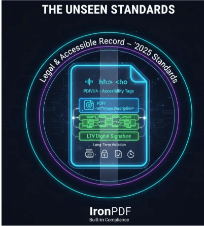 实现 PDF/UA 合规性意味着生成带标签的 PDF。 这种嵌入式结构定义了阅读顺序,识别了标题,标记了表格,并为图像提供了替代文本。 仅依赖简单栅格化或较旧的 HTML 引擎的库通常会失败,生成类似图像的 PDF,这些 PDF 无法用于辅助技术。 IronPDF 在 2026 年的市场中脱颖而出,因为它原生支持 PDF/UA ,允许开发人员通过简单的 API 调用创建带标签的 PDF,确保文档结构(标题、表格、替代文本)可被辅助技术读取,这对于政府和教育部门来说是一项至关重要的功能。