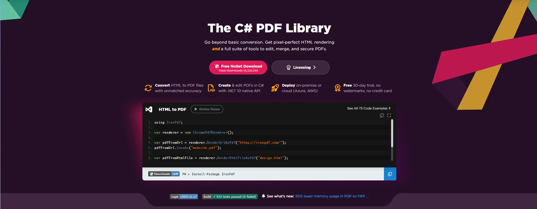 // IronPDF renders the PDF from the downloaded data